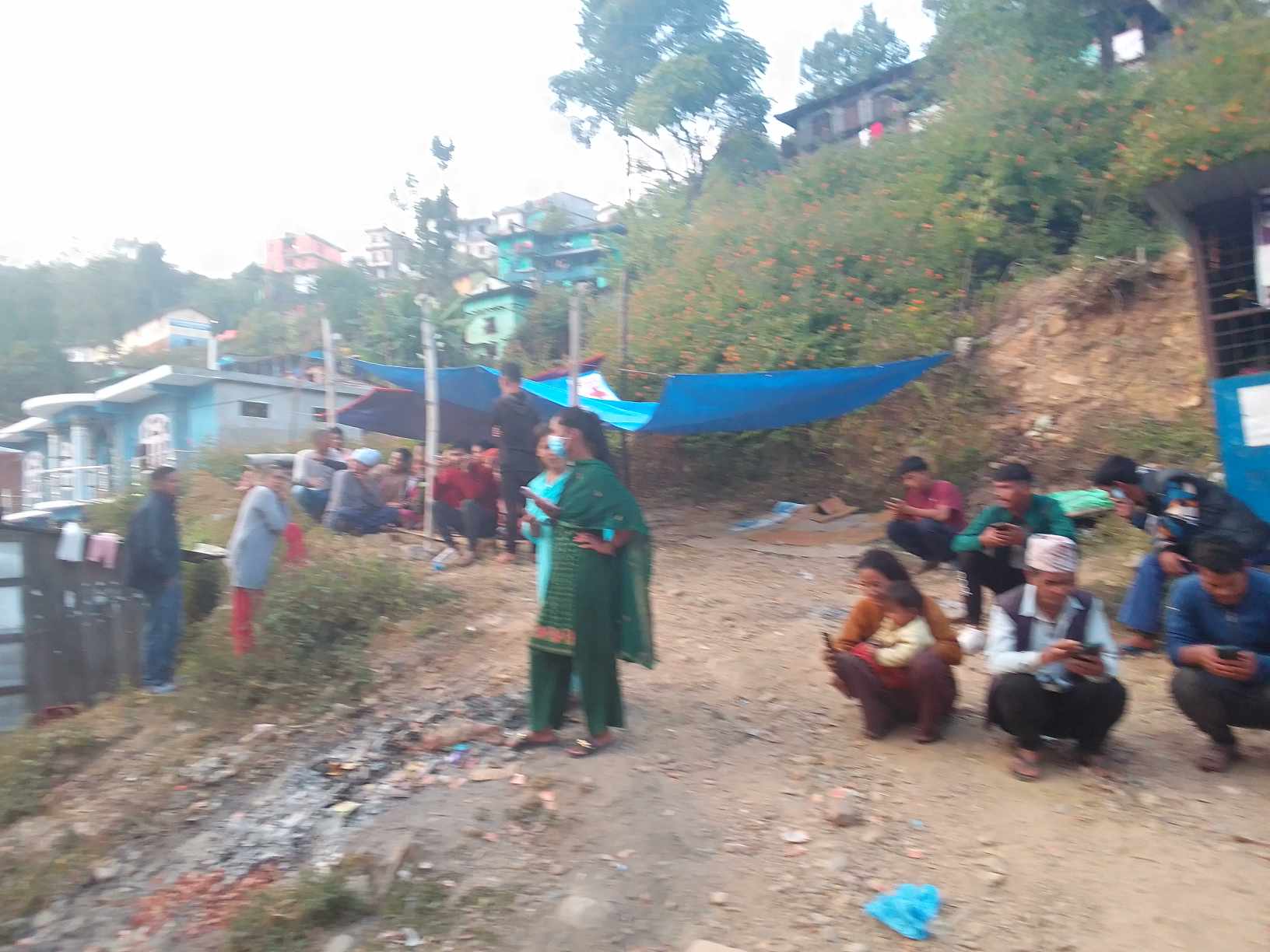 पुराना परम्परागत शैलीमा निर्माण भएका अधिकांश घर भत्किएपछि विस्थापितलाई चिसोबाट जोगाउन र सुरक्षितरूपमा राख्न सशस्त्र प्रहरीले त्रिपालको व्यवस्था गरेको छ ।