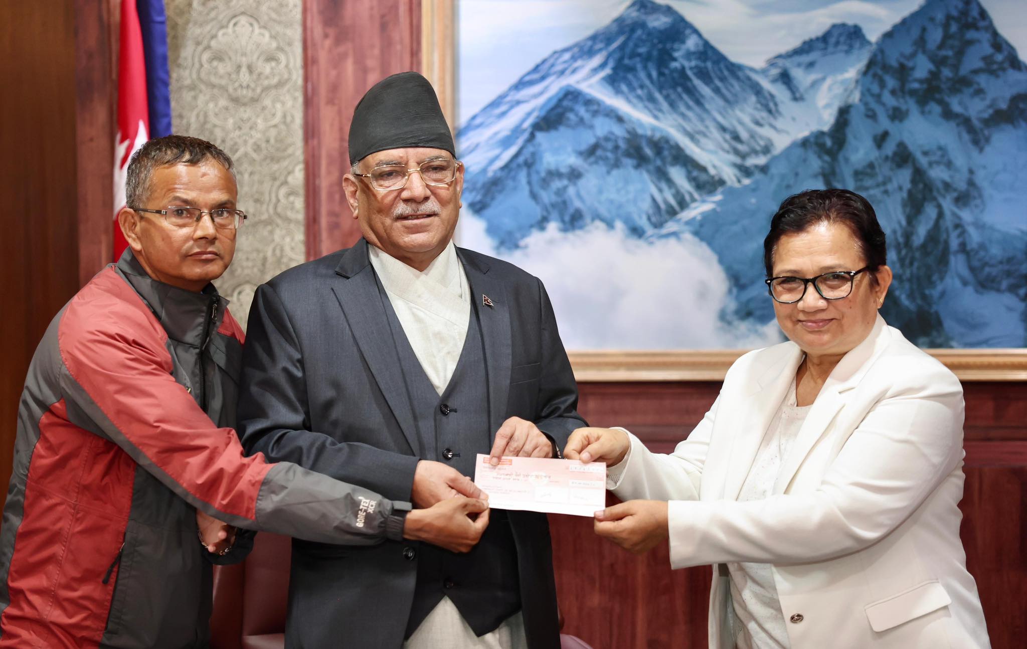 आज प्रधानमन्त्री कार्यालय सिंहदरबारमा माओवादी केन्द्रकी उपाध्यक्ष पम्फा भुुसाललगायतका नेताहरुले प्रधानमन्त्री पुष्पकमल दाहाललाई ५० लाखको चेक हस्तान्तरण गरेका हुन् ।