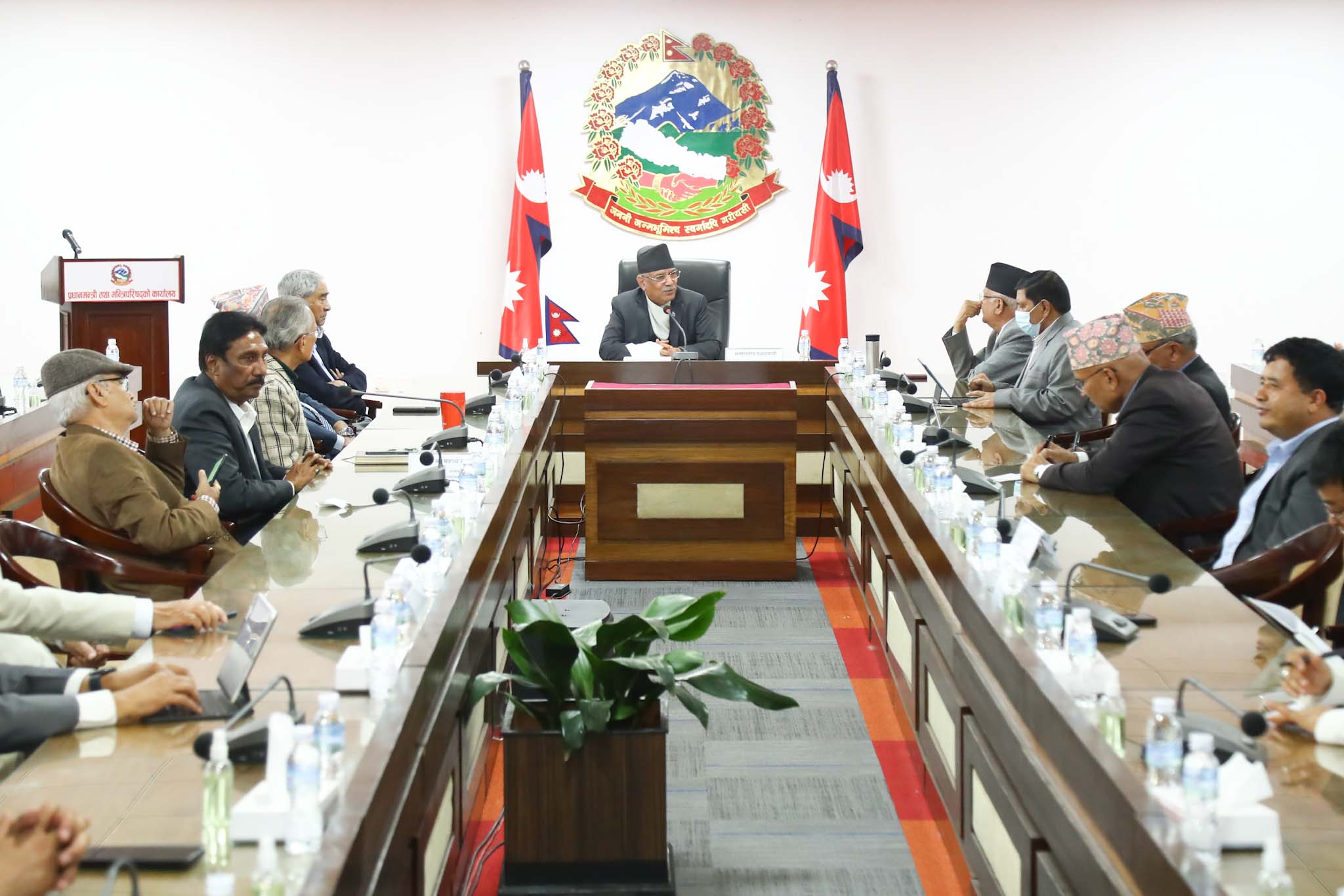उक्त बैठकमा राष्ट्रिय मान्यता प्राप्त राजनीतिक दलका शीर्ष नेता सहभागी छन् ।