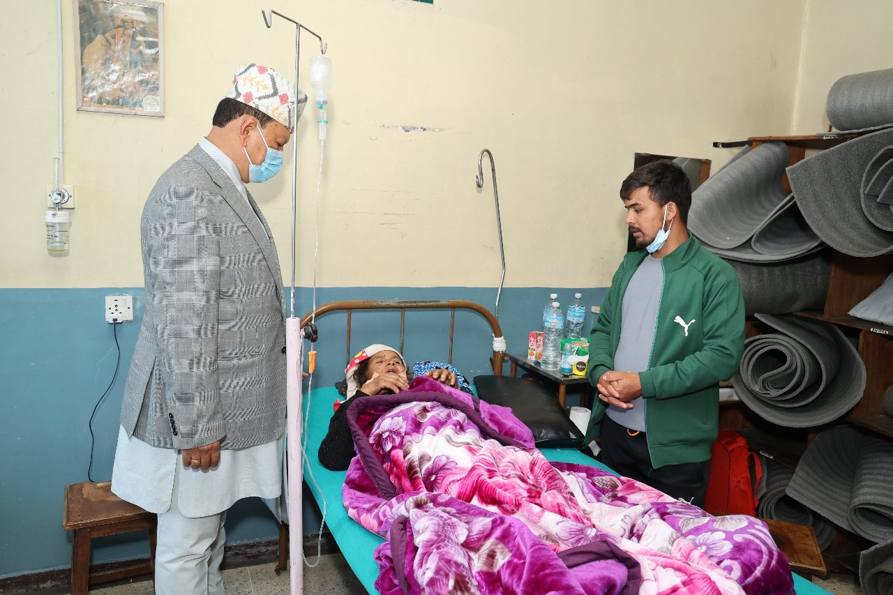 काठमाडौं । पश्चिम नेपालमा गएको विनासकारी भूकम्पमा परि गम्भीर घाइते भएका १० उपचाररत बिरामीलाई स्वास्थ्य मन्त्री मोहन बहादुर बस्नेतले भेटेर स्वास्थ्य अवस्थाबारे जानकारी लिएका छन् ।