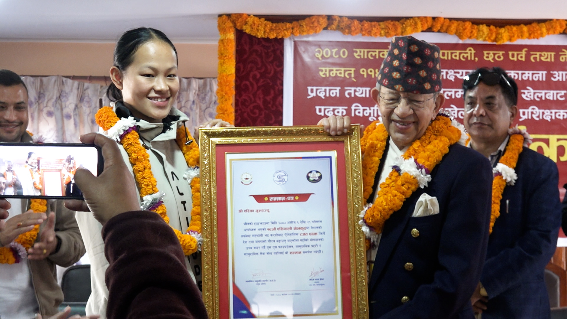 काठमाडौं । एसएस फाउण्डेसन, सामुदायिक सेवा केन्द्र तथा समुदायिक प्रहरीले १९औं एसियाली खेलकुदमा रजत पदक जितेकी करातेकी एरिका गुरुङलाई सम्मान गरेको छ ।
