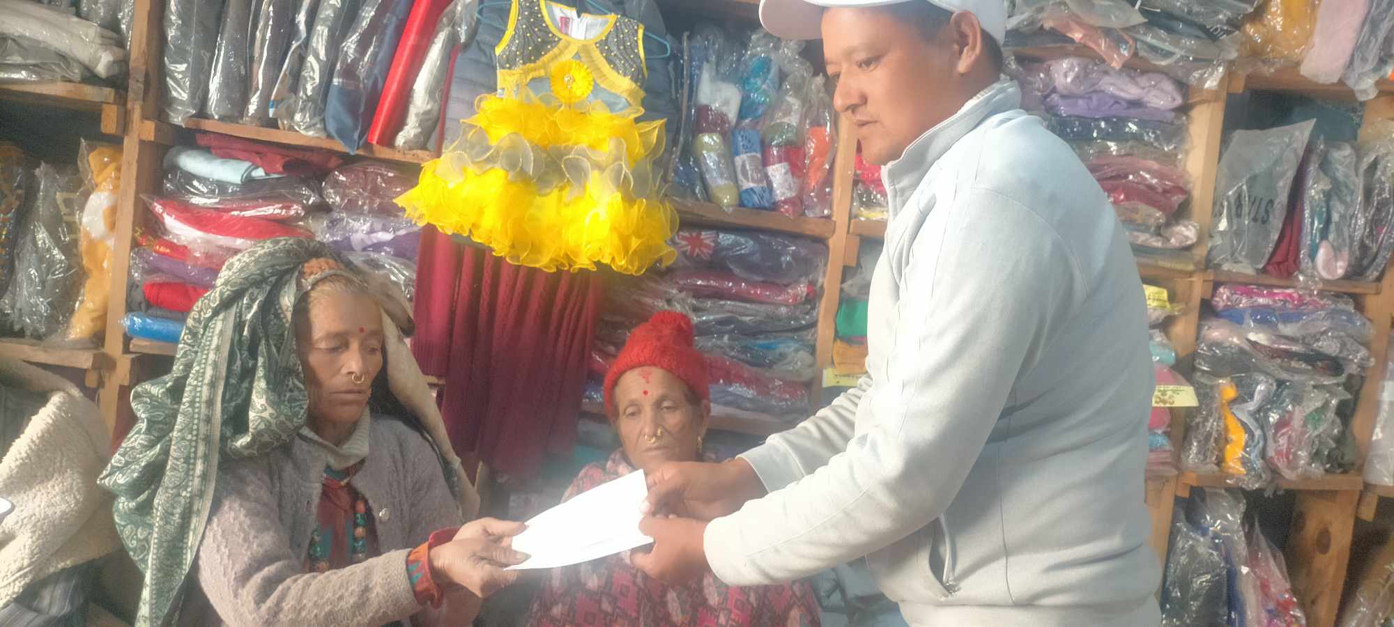 विभिन्न देशमा रहेका मुगाली रारा प्रबास समाजका सदस्यहरुले संकलन गरेको ३० हजार ३ सय ४५ रुपैयाँको चेक समाजका सदस्य तथा पत्रकार दानबहादुर बुढाले पीडितलाई हस्तान्तरण गरे ।
