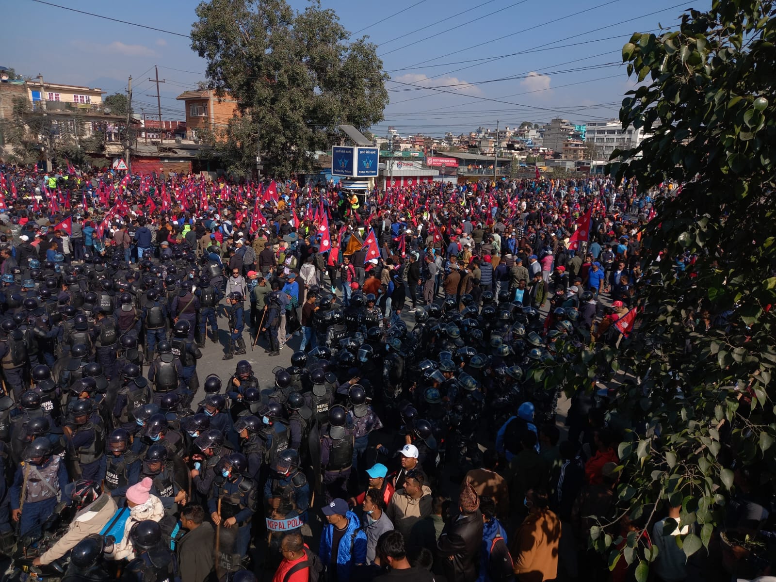 बिहीबार बल्खुमा दुर्गा प्रसाईँ नेतृत्वले आयोजना गरेको प्रदर्शन छ भने राजधानीको तीनकुनेमा युवा संघको प्रदर्शन छ । दुवै प्रदर्शनमा आवश्यकताअनुसार सहभागीका मोबाइल फोनको नेटवर्क नियन्त्रणका लागि प्रहरीले जामर भेहिकल तैनाथ गरेको हो ।