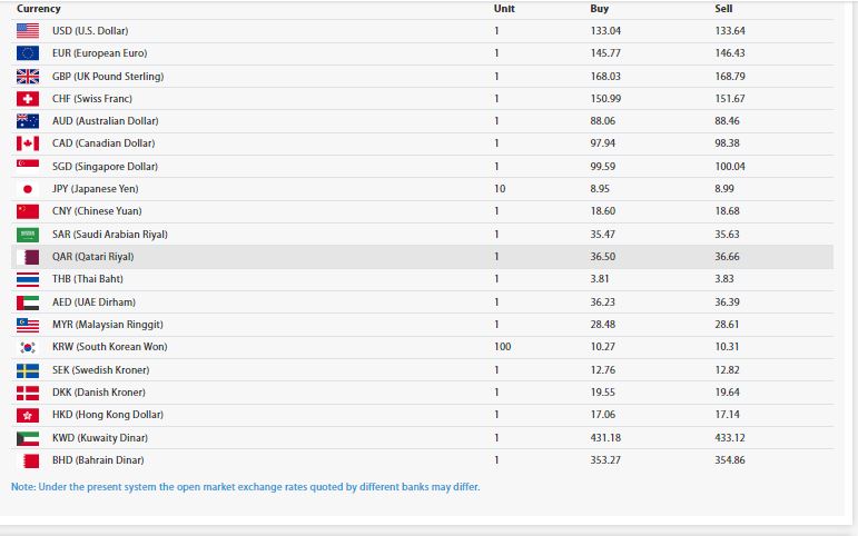 यस्तै, अमेरिकी डलर एकको खरिद दर १३३ रुपैयाँ ०४ पैसा र बिक्री दर १३३ रुपैयाँ ६४ पैसा रहेको छ ।कतारी रियालको मूल्य एकको खरिद दर ३६ रुपैयाँ ५० पैसा र बिक्री दर ३६ रुपैयाँ ६६ पैसा र क्यानाडियन डलर एकको खरिद दर ९७ रुपैयाँ ९४ पैसा र बिक्री दर ९८ रुपैयाँ ३८ पैसा, अस्ट्रेलियन डलर एकको खरिद दर ८८ रुपैयाँ ०६पैसा र बिक्री दर ८८ रुपैयाँ ४६ पैसा रहेको छ ।
