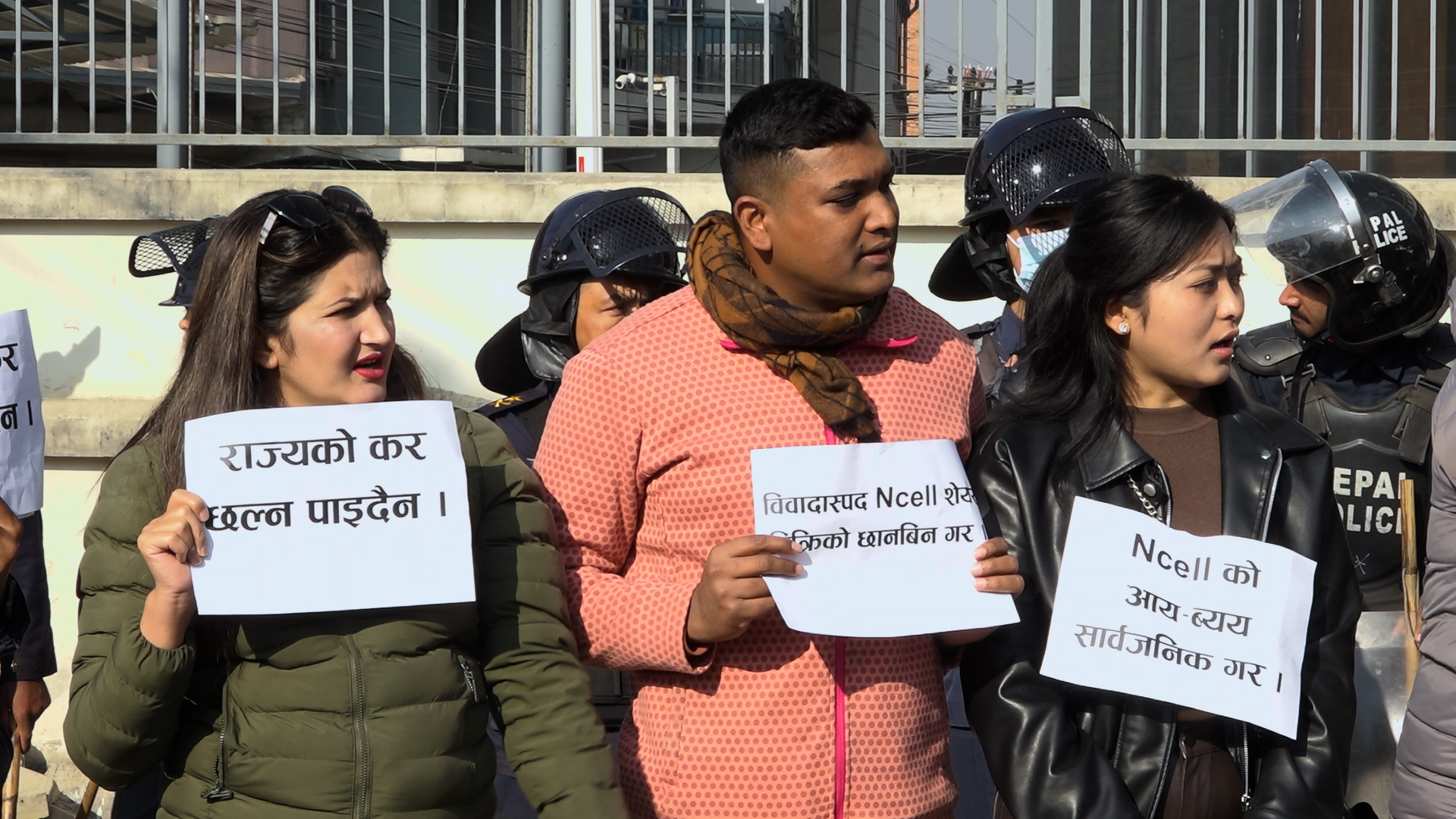प्रर्दशनकारीले ‘बाइकट एनसेल, एनसेलको आयव्यय सार्वजनिक गर, नो ट्याक्स नो सिम, रिजेक्ट एनसेल, राज्यको कर छल्न पाइदैन, नितीगत भ्रष्टाचार गर्न पाइदैनलगायतका नारा लगाएका थिए ।