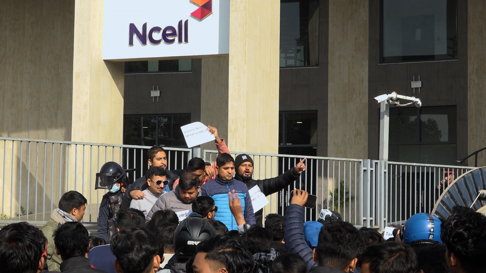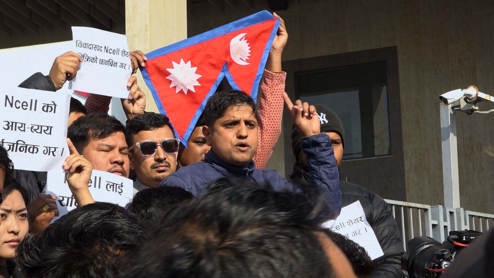 अनेरास्ववियुले मंलगबार लैनचौरस्थित दूरसञ्चार सेवा प्रदायक कम्पनी एनसेलको  कार्यालय अगाडि प्रदर्शन गरेको हो ।