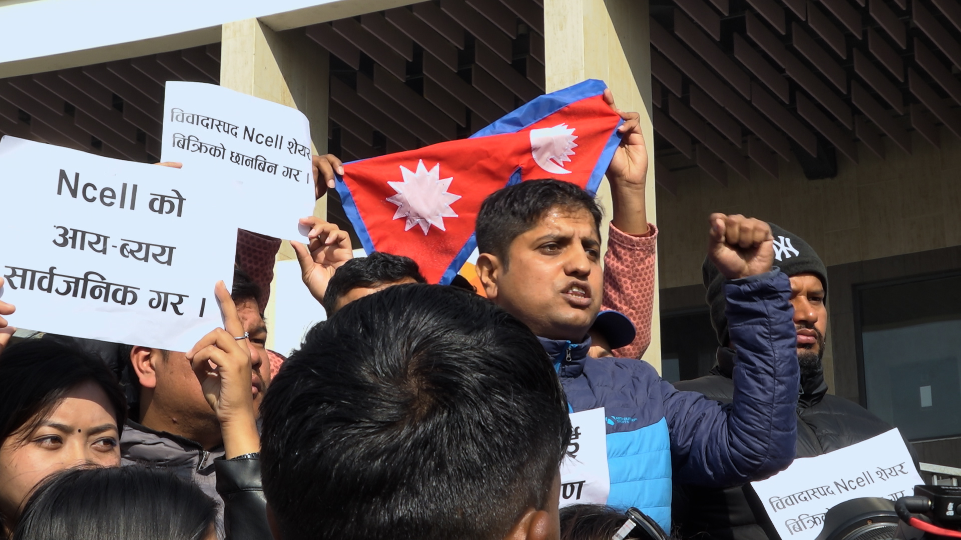 शेयर खरिदबिक्री प्रकरण : एनसेल कार्यालय अगाडि अनेरास्ववियुको प्रर्दशन