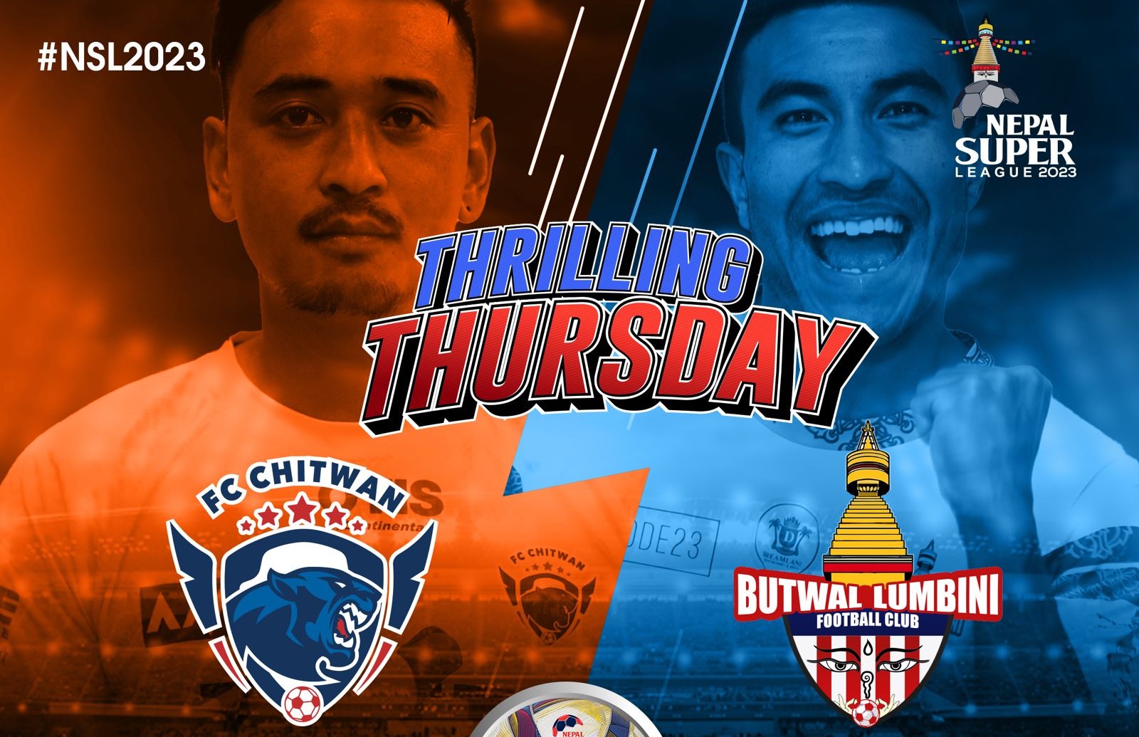 काठमाडौं । काठमाडौंमा जारी नेपाल सुपर लिग (एनएसएल) फुटबलमा आज एफसी चितवन र एफसी बुटवल लुम्बिनीबीच प्रतिस्पर्धा हुने भएको छ ।