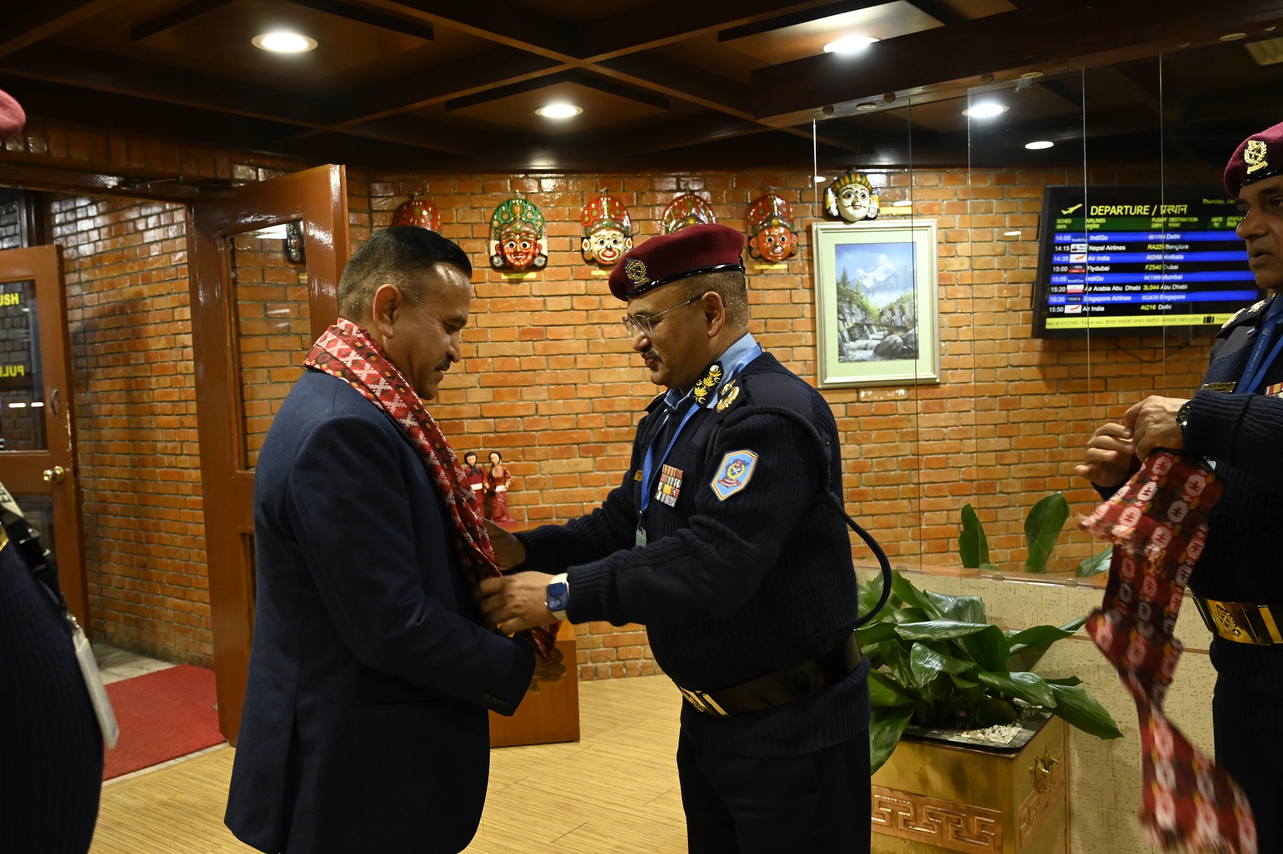 उक्त टोलीलाई प्रहरी अतिक्ति महानिरीक्षकहरू, प्रहरी नायव महानिरीक्षकहरू लगायत वरिष्ठ प्रहरी अधिकृतहरूले त्रिभुवन अन्तर्राष्ट्रिय विमानस्थल गौचरमा स्वागत गरेका थिए ।