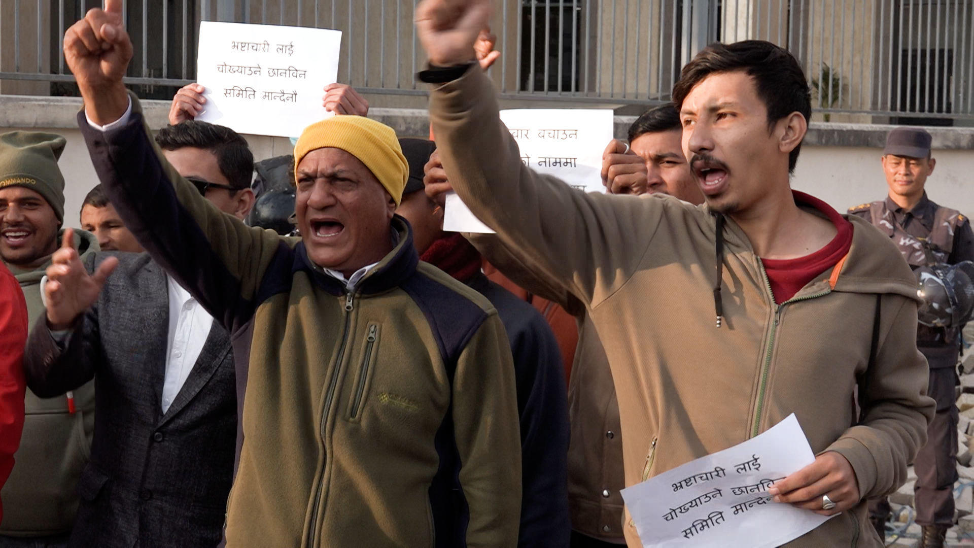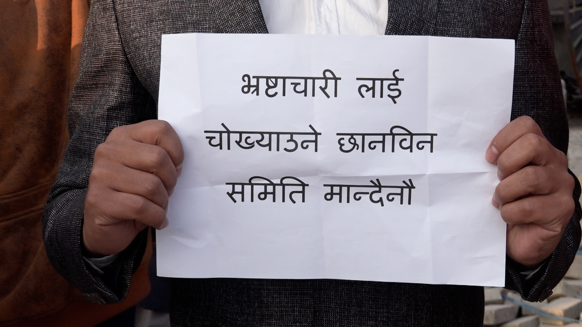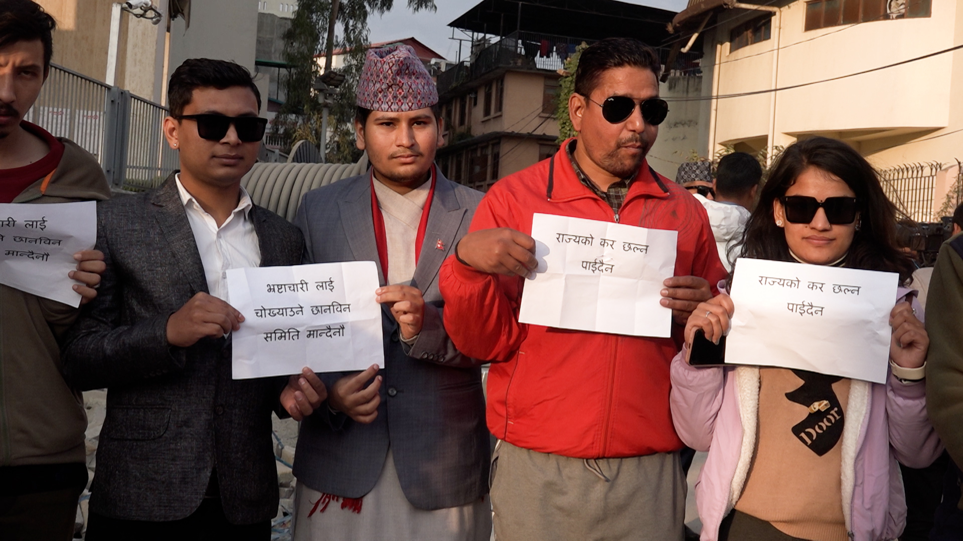 प्रदर्शनका सहभागीहरुले राज्यको कर छल्न पाईँदैन, भ्रष्टाचारीलाई चोख्याउने छानबिन समिति मान्दैनौँ, दुई परिवार बचाउन छानबिनको नाममा नाटक मञ्चन बन्द गर जस्ता नारा लेखिएका प्लेकार्ड प्रदर्शन गरेका थिए ।