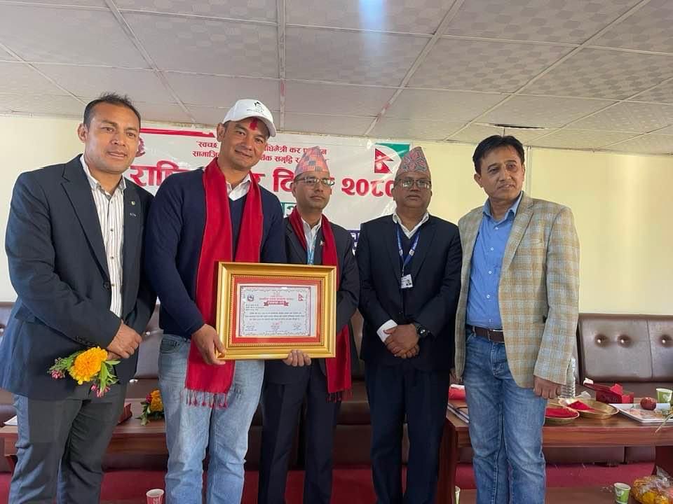 कार्यालयका प्रमुख कर अधिकृत शालिकराम आचार्यले क्लिफका अध्यक्ष राजु कार्कीलाई कर दिवस–२०८० का सन्दर्भमा आयोजित कार्यक्रममा सम्मानपत्र हस्तान्तरण गरेका हुन् ।