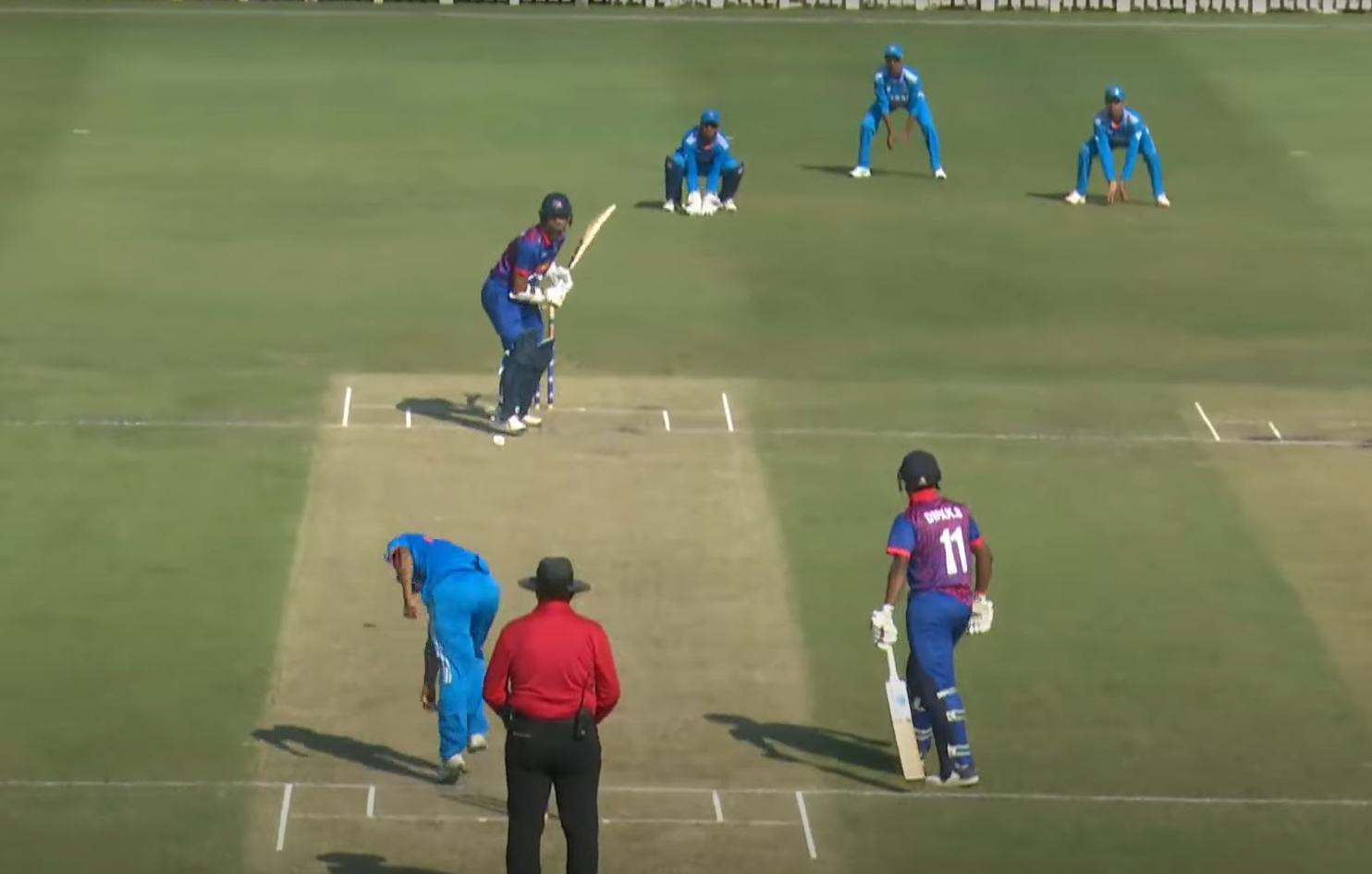 नेपाललाई अलआउट गर्न भारका लागि राज लिम्बानिले ७ विकेटको उत्कृष्ट प्रर्दशन गरे । यस्तै,आराध्य शुक्लाले दुई तथा अस्विन कुलकर्नीले एक विकेट लिए ।