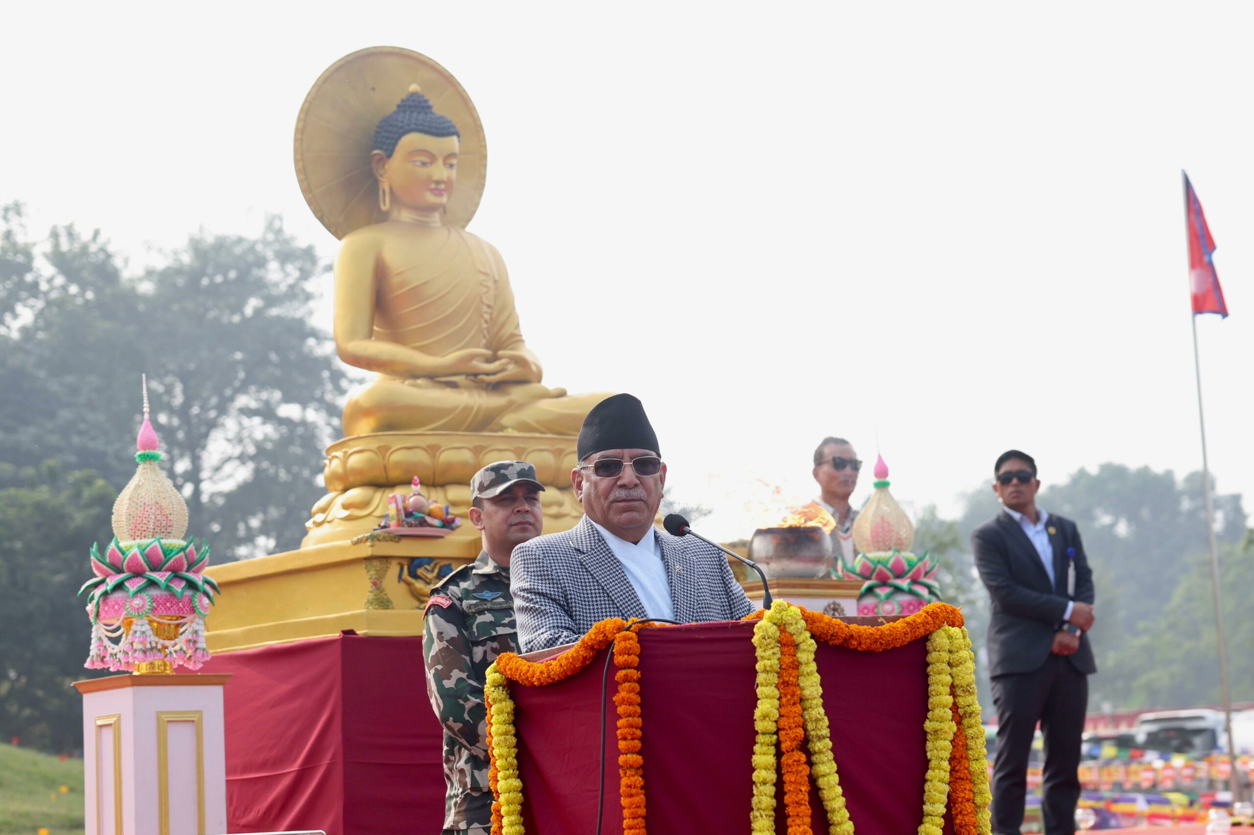 नवलपरासीको रामग्राममा आयोजित विश्व शान्ति कार्यक्रमलाई सम्बोधन गर्दै प्रधानमन्त्री दाहालले बुद्धका शिक्षाको औचित्य, आवश्यकता र महत्व मानव जाति रहेसम्म नसकिने भन्न्दै आजको विश्वमा शान्तिको महत्व झन धेरै भएको बताए ।