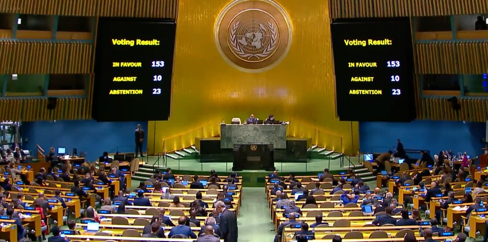 काठमाडौं । इजरायल–हमास द्वन्द्वका बीच गाजामा तत्काल युद्धविरामका लागि पेश गरिएको प्रस्ताव संयुक्त राष्ट्रसंघको महासभा -युएनजीए_को आपतकालीन बैठकमा पारित भएको छ ।