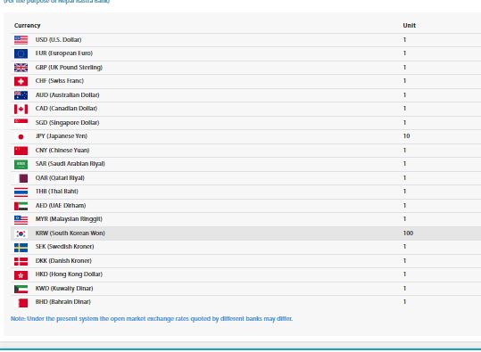 त्यस्तै, युरो एकको खरिद दर १४५ रुपैयाँ २८ पैसा र बिक्री दर १४५ रुपैयाँ ९३ पैसा रहेको छ ।बेलायती पाउण्ड एकको खरिद दर १६८ रुपैयाँ ५३ पैसा र बिक्री दर १६९ रुपैयाँ २९ पैसा रहेको छ ।