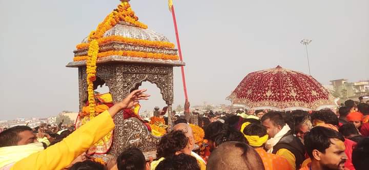 जनकपुरधाम । विवाह पञ्चमी महोत्सवको मुख्य दिन आइतबार दिउँसो ऐतिहासिक रंगभूमि मैदानमा भगवान राम र सीताको स्वयम्वर गरिएको छ ।
