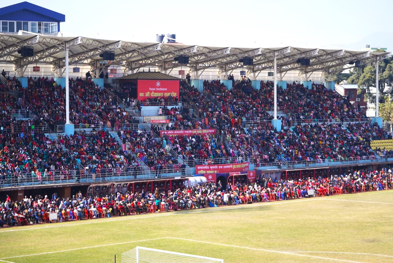 काठमाडौं । मुलुककै जेठो तथा ठूलो त्रिभुवन विश्वविद्यालयको ४९औं दिक्षान्त समारोह सोमवार सम्पन्न भएको छ ।दशरथ रंगशालाको खेल मैदानमा भएको दीक्षान्त समारोहमा १२ हजार ४ सय १५ जना विद्यार्थी दिक्षीत भएका छन् ।