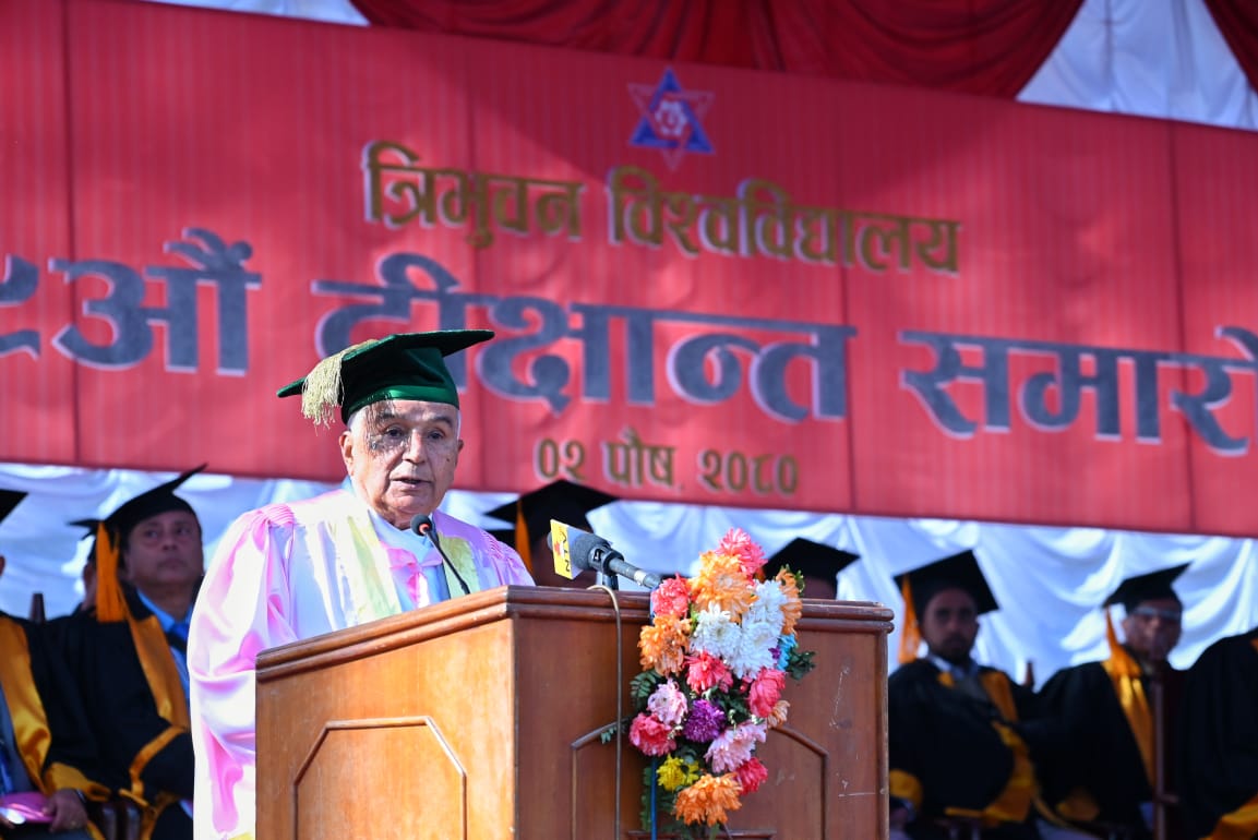 सोमबार त्रिभुवन विश्वविद्यालयको उनन्चासौँ दीक्षान्त समारोहलाई सम्बोधन गर्दै राष्ट्रपति पौडेलले, नेपालले अझै परिवर्तनको बाटोमा अघि बढ्दाका सङ्क्रमणकालीन चुनौती र विघ्नबाधाहरूको सामना गर्नुपरिरहेको बताएका हुन् ।