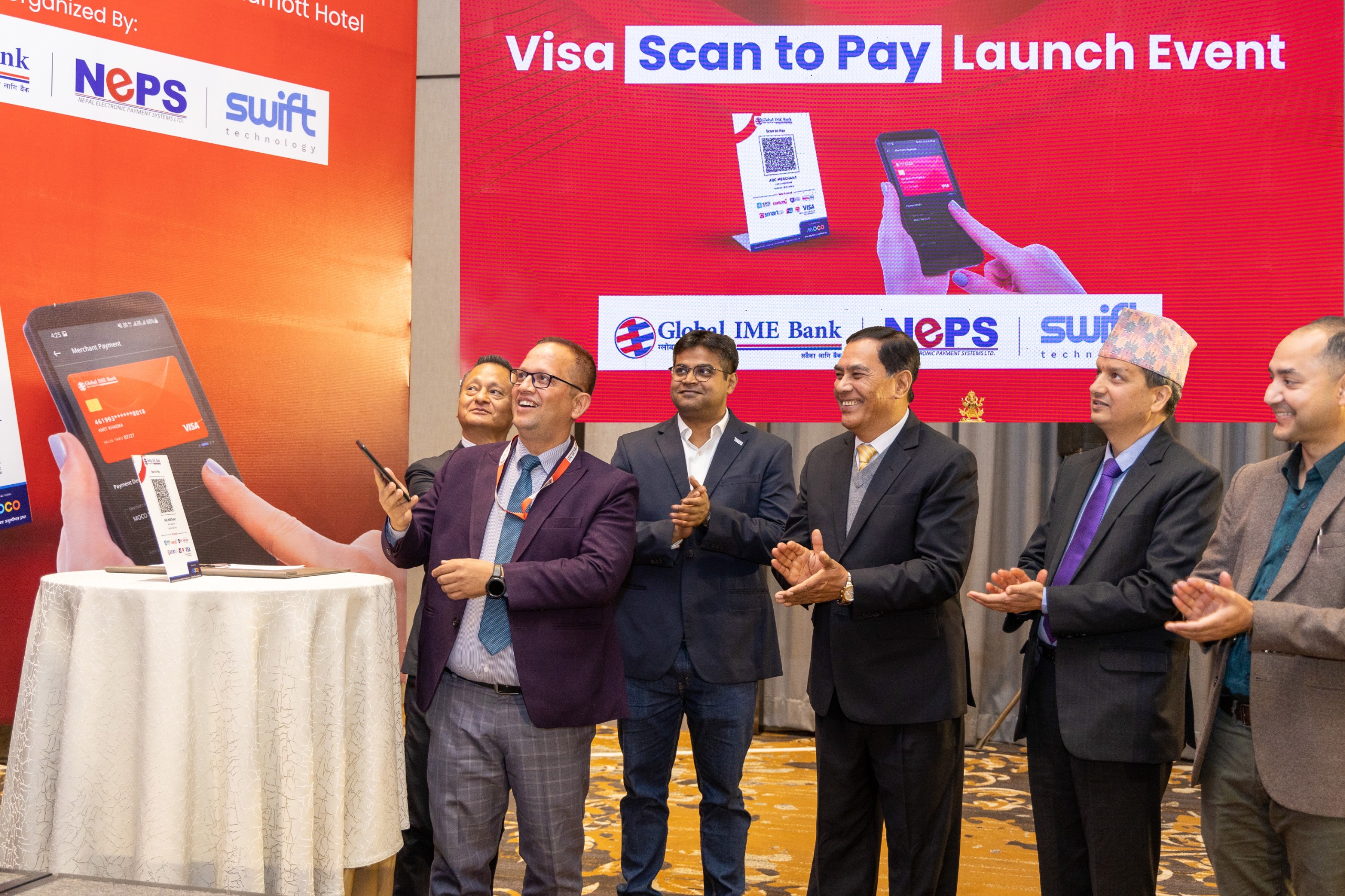 काठमाडौंमा आयोजित एक विशेष समारोहमा नेपाल राष्ट्र बैंकका कार्यकारी निर्देशक डा. गुणाकर भट्ट, ग्लोबल आइएमई बैंकका प्रमुख कार्यकारी अधिकृत रत्नराज बज्राचार्य, नेपाल इलेक्ट्रोनिक पेमेन्बट सोलुशनका प्रमुख कार्यकारी अधिकृत सञ्जीव सुब्बा र स्विफ्ट टेक्नोलोजीका प्रमुख कार्यकारी अधिकृत निरज ढुङ्गानाले क्यूआर स्क्यान गरी प्रथम कारोबारसहित उक्त सेवाको संयुक्त रुपमा शुभारम्भ गरेका हुन ।