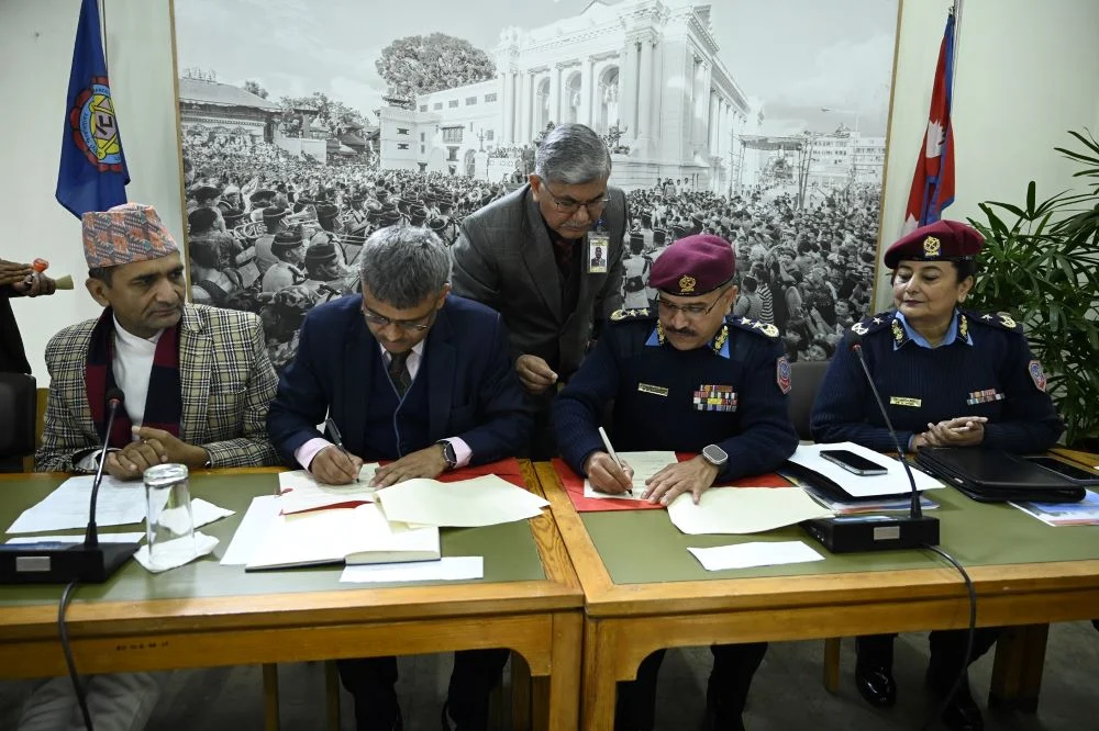 काठमाडौं । चिकित्सा शिक्षा र अनुसन्धानको क्षेत्रमा सहकार्य गर्न नेपाल प्रहरी अस्पताल र काठमाडौं विश्वविद्यालयबीच सम्झौतापत्रमा हस्ताक्षर भएको छ ।