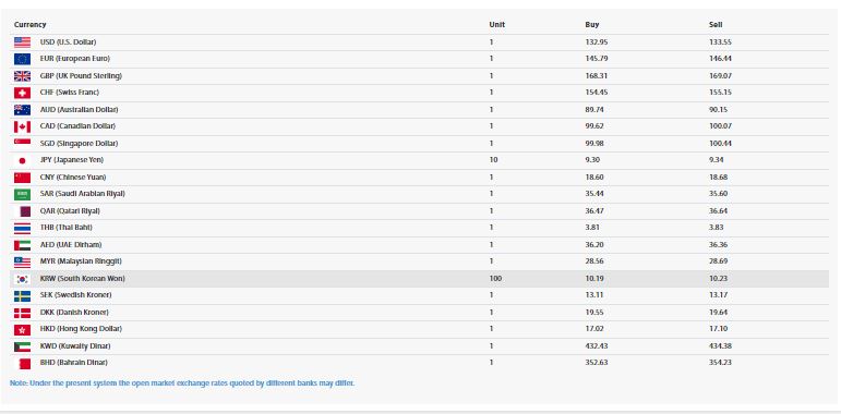 काठमाडौं । नेपाल राष्ट्र बैंकले आजका लागि विदेशी मुद्राको विनिमयदर तोकेको छ । आज अमेरिकी डलर एकको खरिद दर १३२ रुपैयाँ ९५ पैसा र बिक्री दर १३३ रुपैयाँ ५५ पैसा पुगेको छ ।