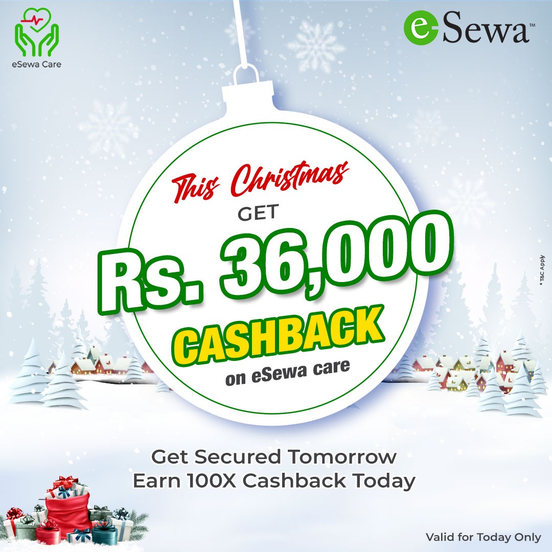 काठमाडौं । नेपालको पहिलो र अग्रणी भुक्तानी सेवा प्रदायक इसेवाले अत्याधिक रुचाइएको इसेवा केयर सुविधामा क्रिसमस अफर अन्तरगत ३६ हजार क्यासब्याक पाइने अफर सार्बजनिक गरेको छ ।