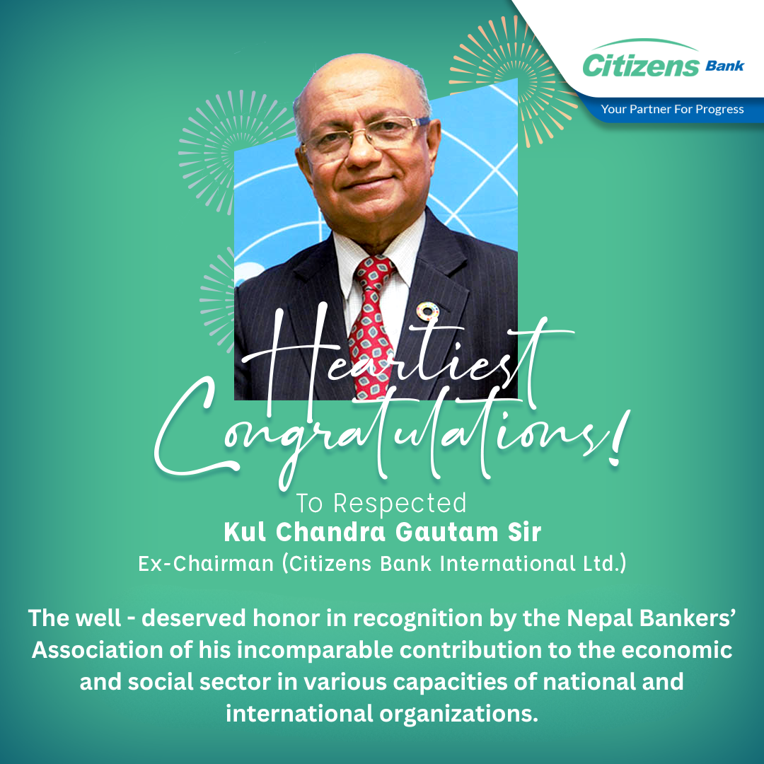 नेपाल बैंकर्स संघ जस्तो गरिमामय संस्थाबाट बैंकका पूर्व अध्यक्ष सम्मानित भएकोमा सिटिजन्स बैंकले गर्व महशुस गरेको छ । साथै गौतमलाई हार्दिक बधाई तथा शुभकामना व्यक्त गरेको छ ।