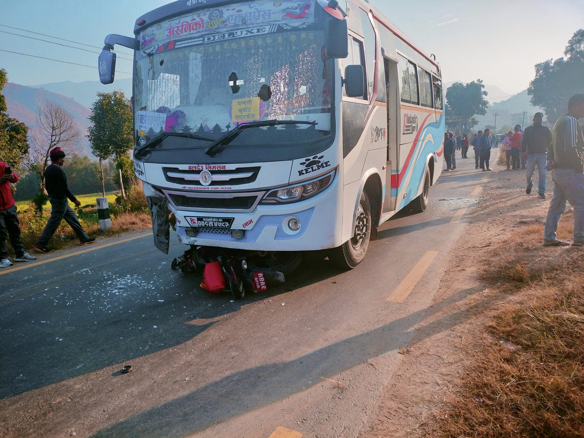 आज बिहान काठमाडौंबाट खोटाङ आउँदै गरेको वाग्मती प्रदेश ०१–००६ ख ४५९३ नं को बसले बा ६० प ३५४५ नं को मोटरसाइकललाई ठक्कर दिएको थियो ।
