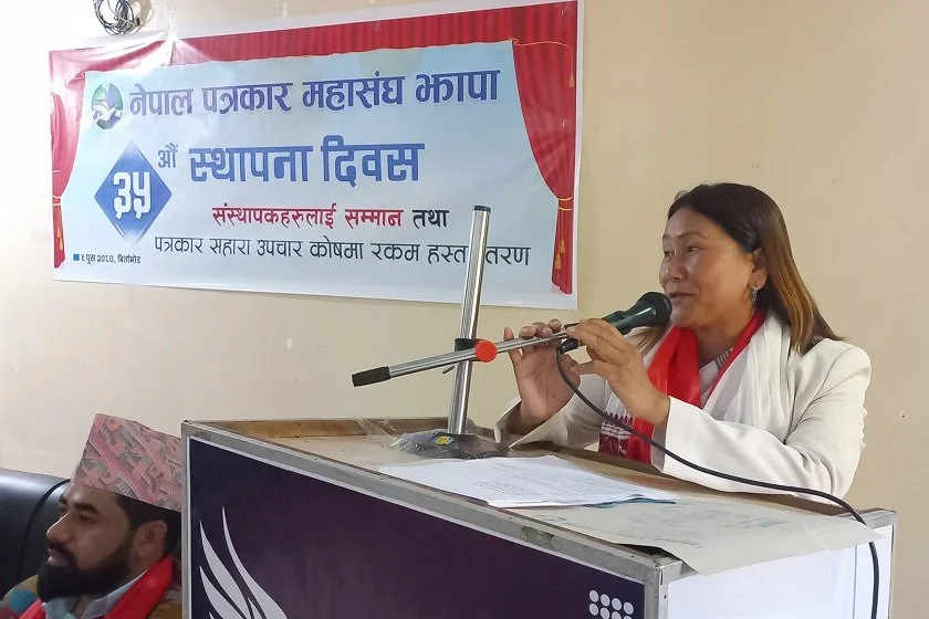 बनियानी । प्रतिनिधिसभाका उपसभामुख इन्दिरा रानामगरले पत्रकारले सुशासनका पक्षमा कलम चलाउनुपर्नेमा जोड दिएकी छन् । नेपाल पत्रकार महासङ्घ झापाको ३५औँ स्थापना दिवसका अवसरमा आज आयोजित संस्थापकलाई सम्मान तथा पत्रकार सहारा उपचार कोषमा रकम हस्तान्तरण कार्यक्रममा उनले मुलुकको समृद्धिका लागि पत्रकारले भ्रष्टाचारविरुद्ध र सुशासनका पक्षमा कलम चलाउनुपर्ने बताइन् ।