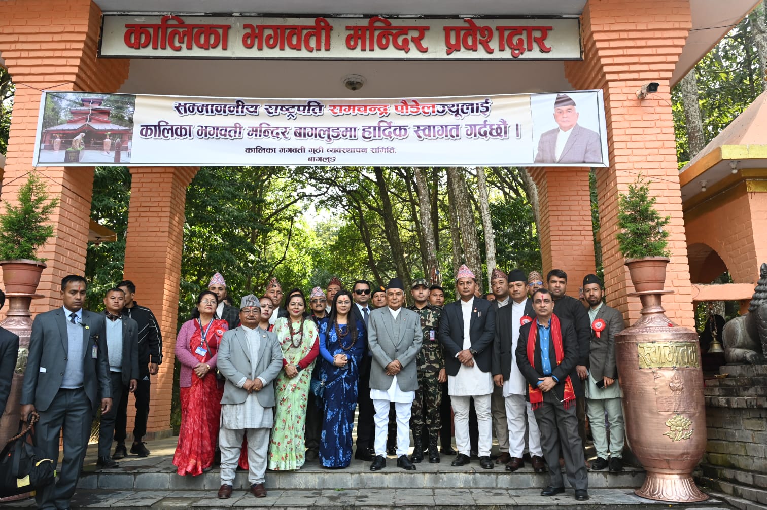 राष्ट्रपति पौडेल सातौँ बागलुङ महोत्सवको उद्घाटनका लागि बागलुङ आएका हुन् । यस अवसरमा बागलुङ कालिका मन्दिरको दर्शन गर्नुका साथै पूर्जाअर्चना गर्नेछन् ।