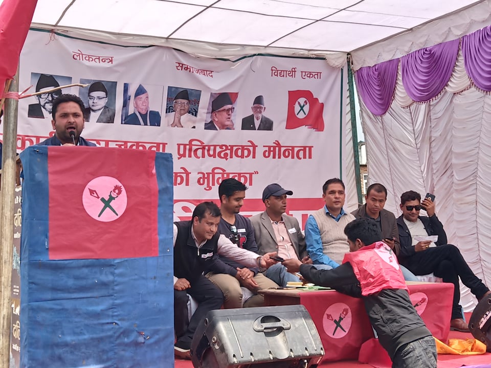 काठमाडौं । प्रमुख प्रतिपक्षी दल कांग्रेसले मौनता देखाएको भन्दै नेपाल विद्यार्थी संघले शुक्रबार काठमाडौंमा खबरदारी सभा गरेको छ ।