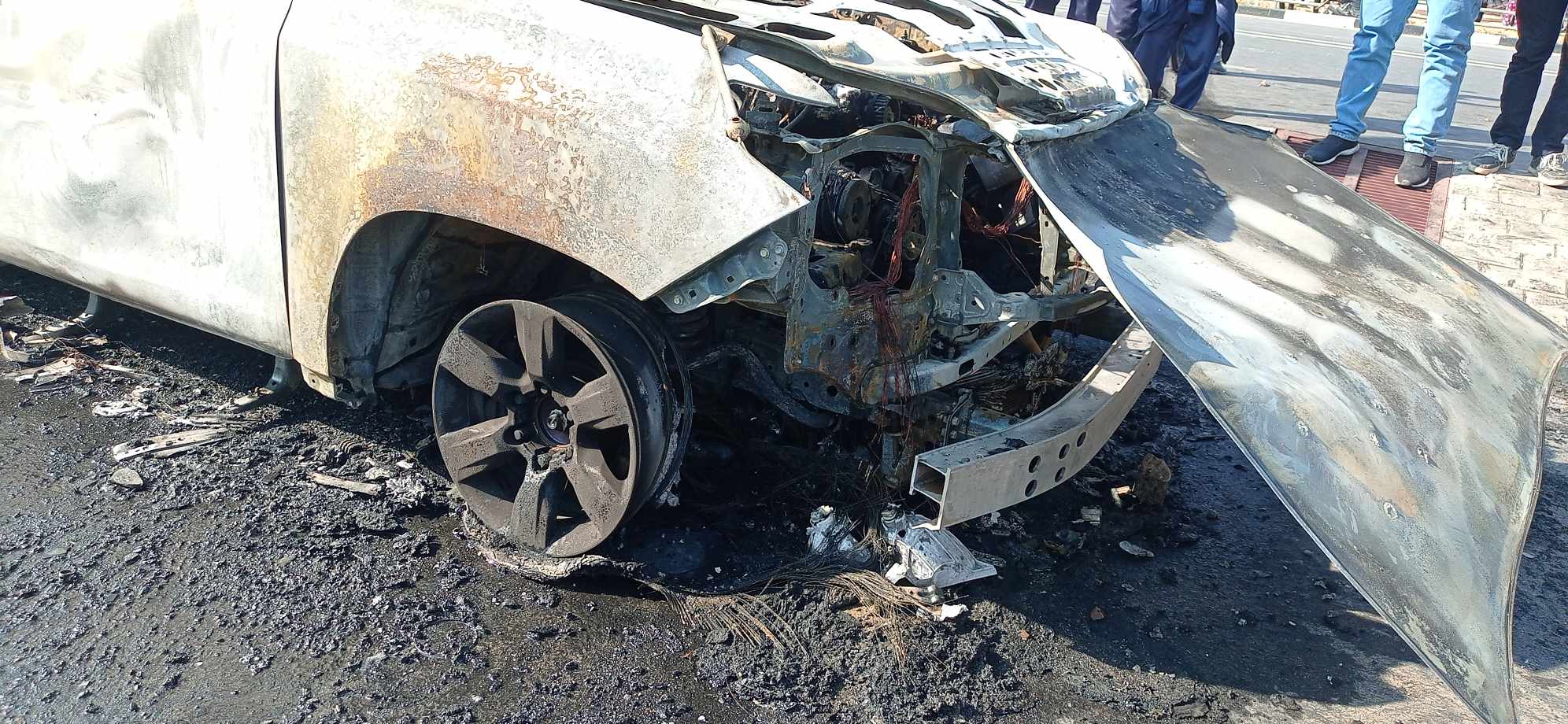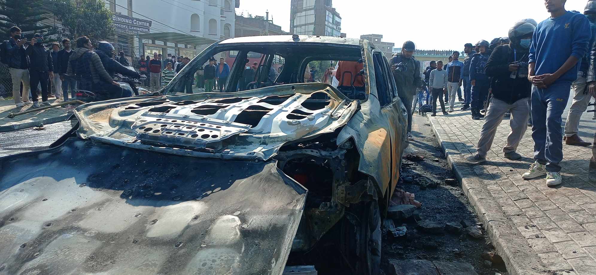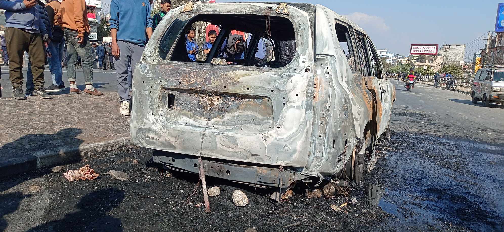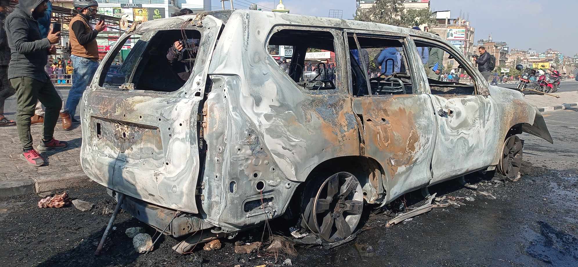 हेर्नुहोस् आगजनी गरिएको मन्त्रीको गाडी :
