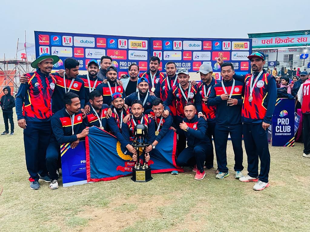 काठमाडौं । पर्सा क्रिकेट संघको आयोजनामा वीरगंजमा सञ्चालित नेपाल प्रो क्लब च्याम्पियनसिप टि–२० क्रिकेट प्रतियोगिताको उपाधि नेपाल पुलिस क्लबले हासिल गरेको छ ।