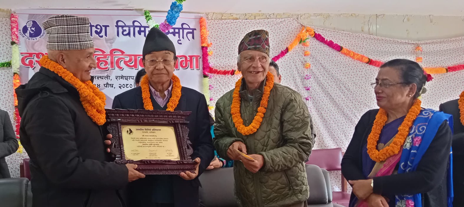 जगदीश घिमिरे स्मृति प्रतिष्ठानले वितरण गर्दै आएको सो पुरस्कार कार्यक्रमका प्रमुख अतिथि प्राज्ञ तुलसी दिवसले प्रदान गरे । पुरस्कारको राशी ५१ हजार रुपैयाँ रहेको छ ।