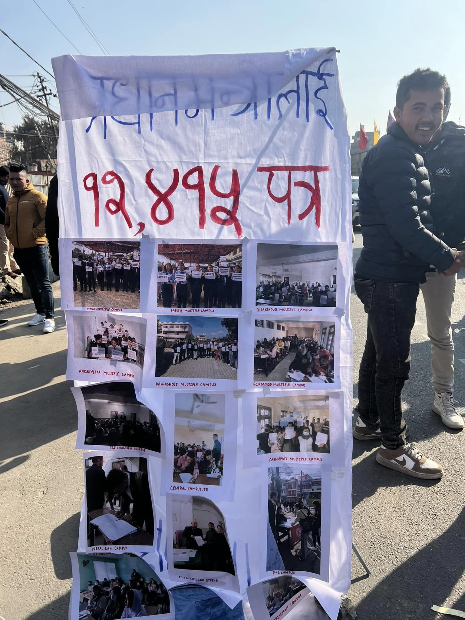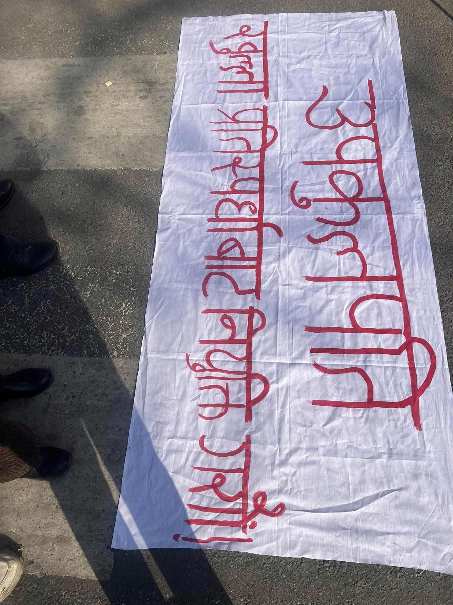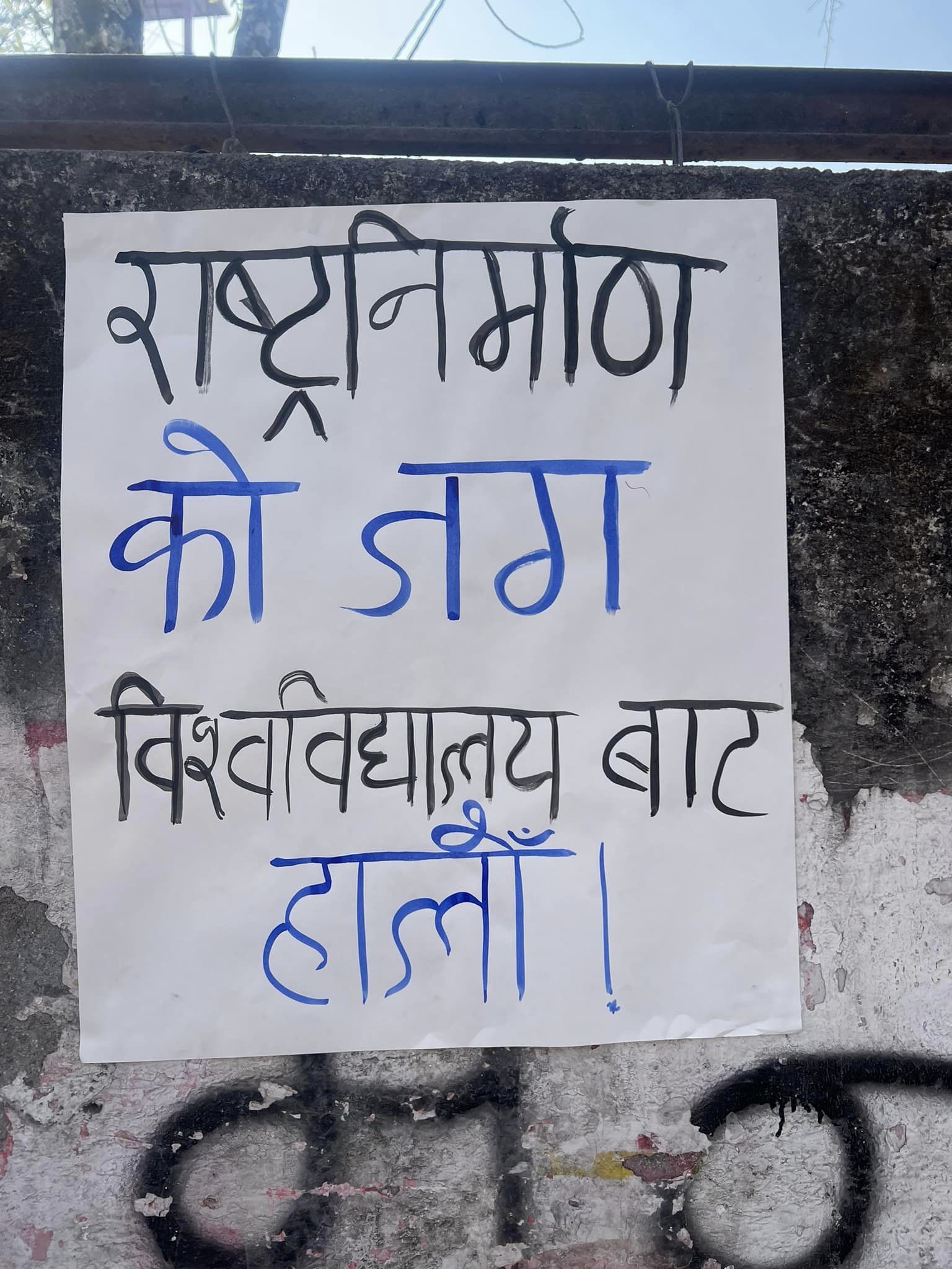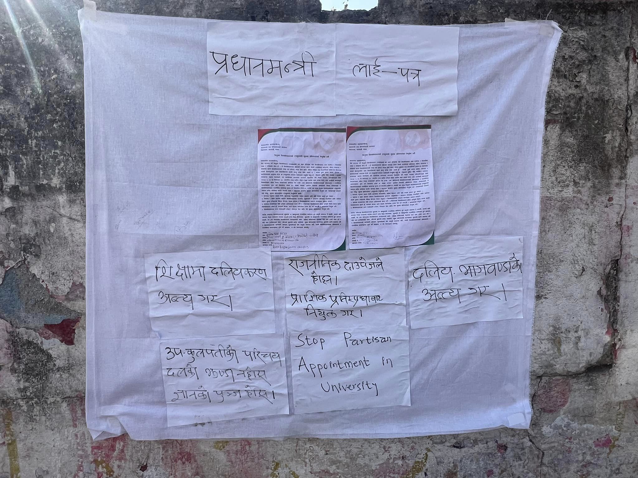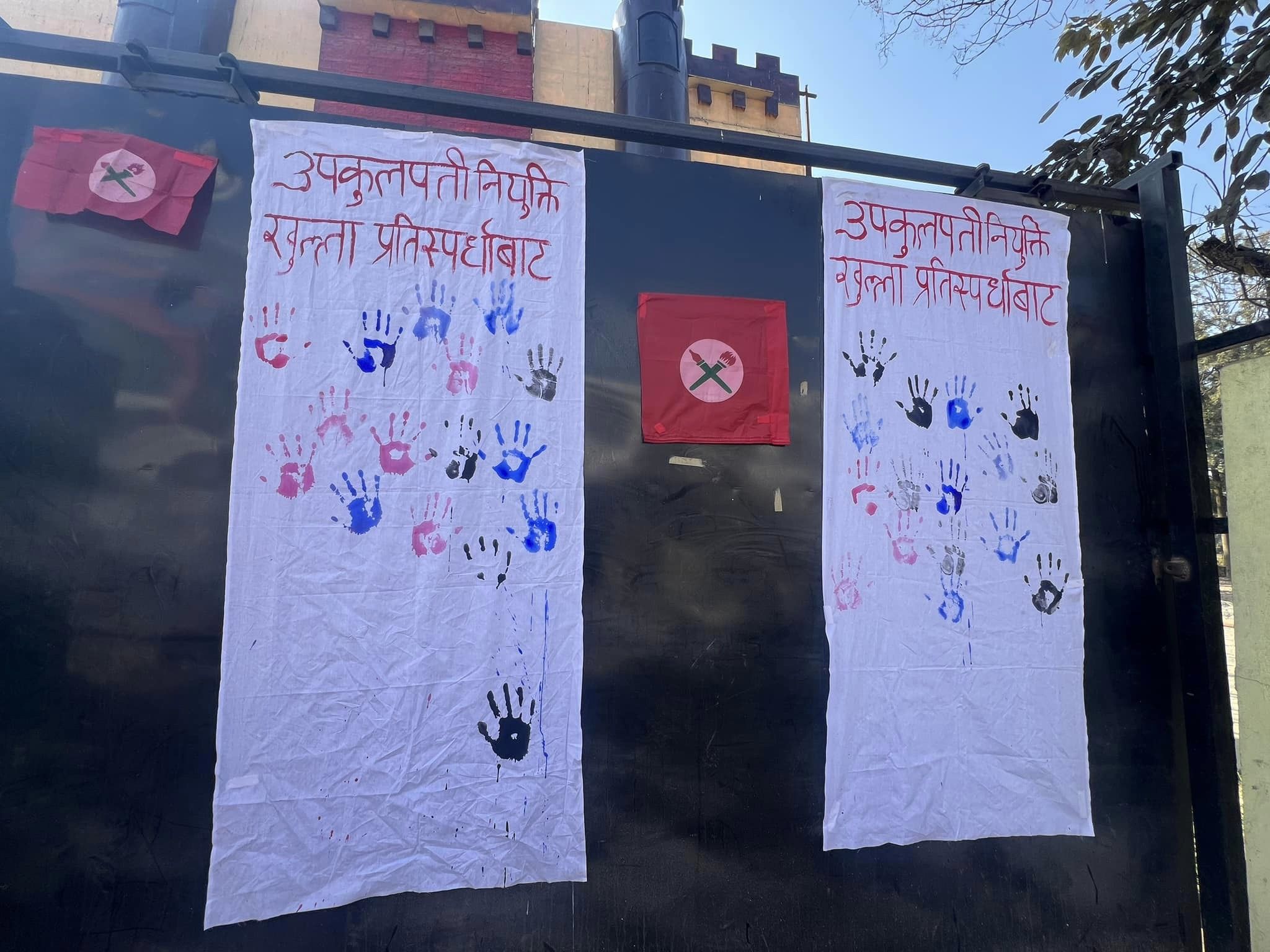 नेविसंघले उपकुलपति नियुक्ति खुला प्रतिस्पर्धाबाट, उपकुुलपति परिचय दलको झण्डा नहोस् ज्ञानको पुञ्ज होस्, राजनीतिक दाउपेज होइन प्राज्ञिक प्रतिस्पर्धाबाट नियुक्त गर, दलीय भागबण्डा अन्त्य गर, विश्वविद्यालयको पदहरु लिलामी नगर लगायतका पम्पलेटहरुसहित शान्तिपूर्ण प्रदर्शन गरेको हो ।