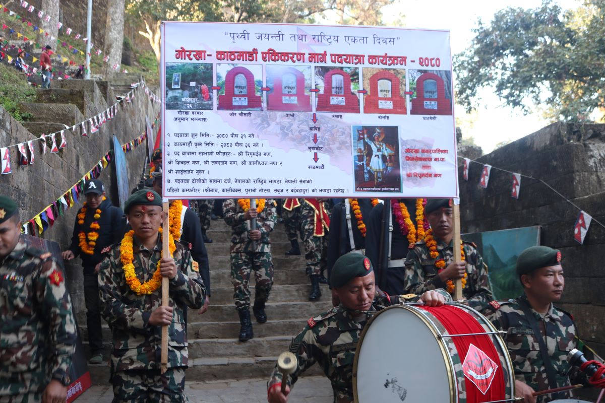 गोरखा । नेपाली सेनाले गोरखा दरबारदेखि काठमाडौंसम्मको पदयात्रा शुरु गरेको छ ।