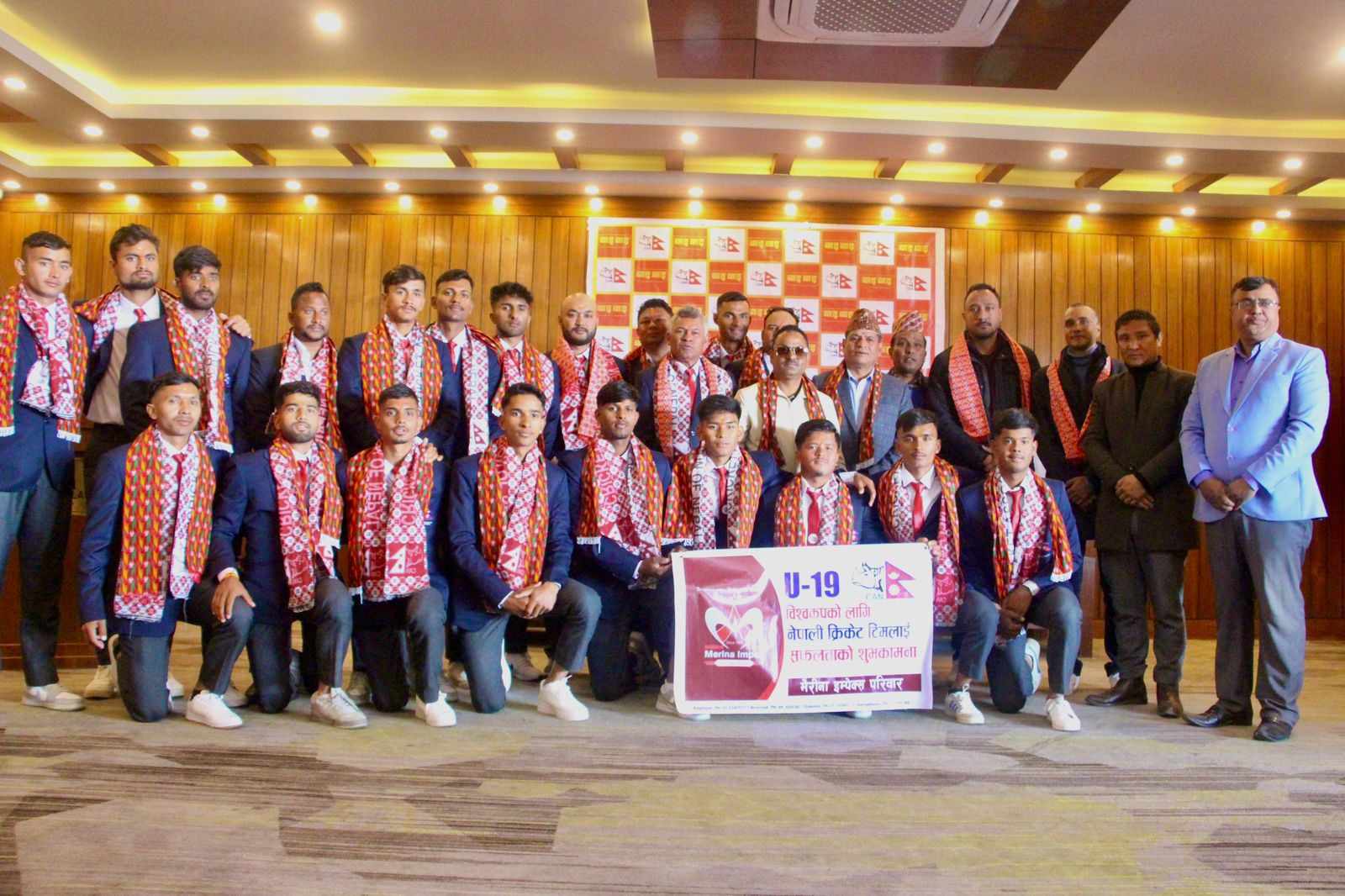 काठमाडौं । बागबजारमा रहेको मेरीना इम्पेक्सले नेपाली यू–१९ राष्ट्रिय क्रिकेट टिमका खेलाडि र अफिसियलहरुलाई बिस जोर सुट दिने भएको छ ।