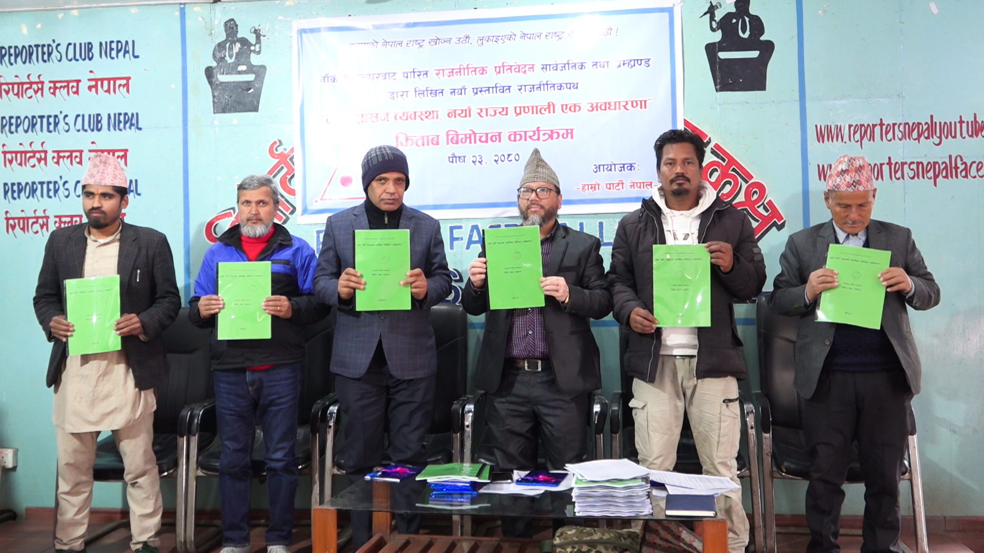 प्रतिवेदनसँगै पार्टीका संस्थापक एवं संयोजक गोविन्द बोहोराद्वारा लिखित किताब ‘नयाँ राजनीतिक दर्शन, नयाँ राज्यप्रणाली एक अवधारणा’ पुस्तक पनि सार्वजनिक गरिएको छ ।संयोजक बोहोरा, प्राडा विष्णु दाहाल, मनोक्रान्ति अभियन्ता शिवराज घिमिरेलगायतले पुस्तक विमोचन गरे । पार्टीको राजनीतिक प्रतिवेदनमा राष्ट्राध्यक्ष प्रणाली, विशेष अधिकारसहितको संवैधानिक राष्टाध्यक्ष, प्रत्यक्ष निर्वाचित जनप्रतिनिधिले सर्वोत्तम व्यक्तिलाई राष्ट्राध्यक्ष छान्नुपर्ने परिकल्पना गरिएको छ ।