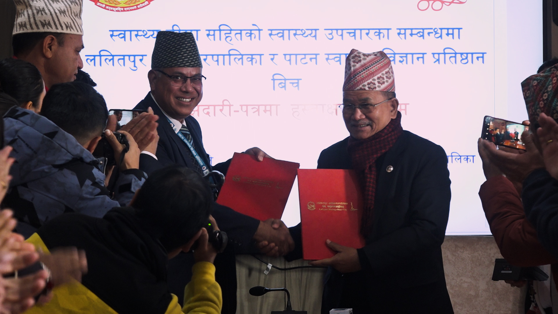 महानगरपालिकाले शुरु गरेको राष्ट्रिय स्वास्थ्य बीमा कार्यक्रम कार्यान्वयन गर्ने सन्दर्भमा महानगरले पाटन स्वास्थ्य विज्ञान प्रतिष्ठानसँग सम्झौता गरेर स्वास्थ्य बीमा कार्यक्रम कार्यान्वयनमा ल्याउन उक्त सम्झौता गरेको हो । कार्यक्रम आगामी फागुन १ गतेबाट पूर्ण रुपमा कार्यान्वयनमा जाने महानगरले जनाएको छ ।