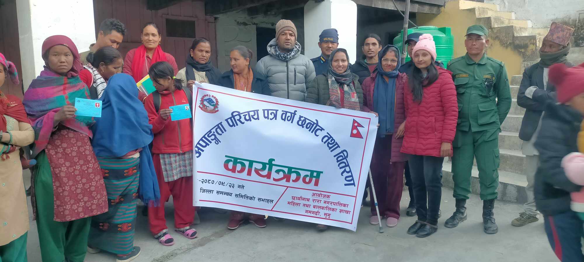 नगरपालिकाले विभिन्न सयममा प्रक्रिया पुर्याएर दुईसय आठजना ब्यक्तिलाई अपाङ्ग परिचय पत्र वितरण गरेको पालिकाकी उपप्रमुख एवम कार्यवाहक प्रमुख ऐश्वर्य मल्लले जानकारी दिइन् ।