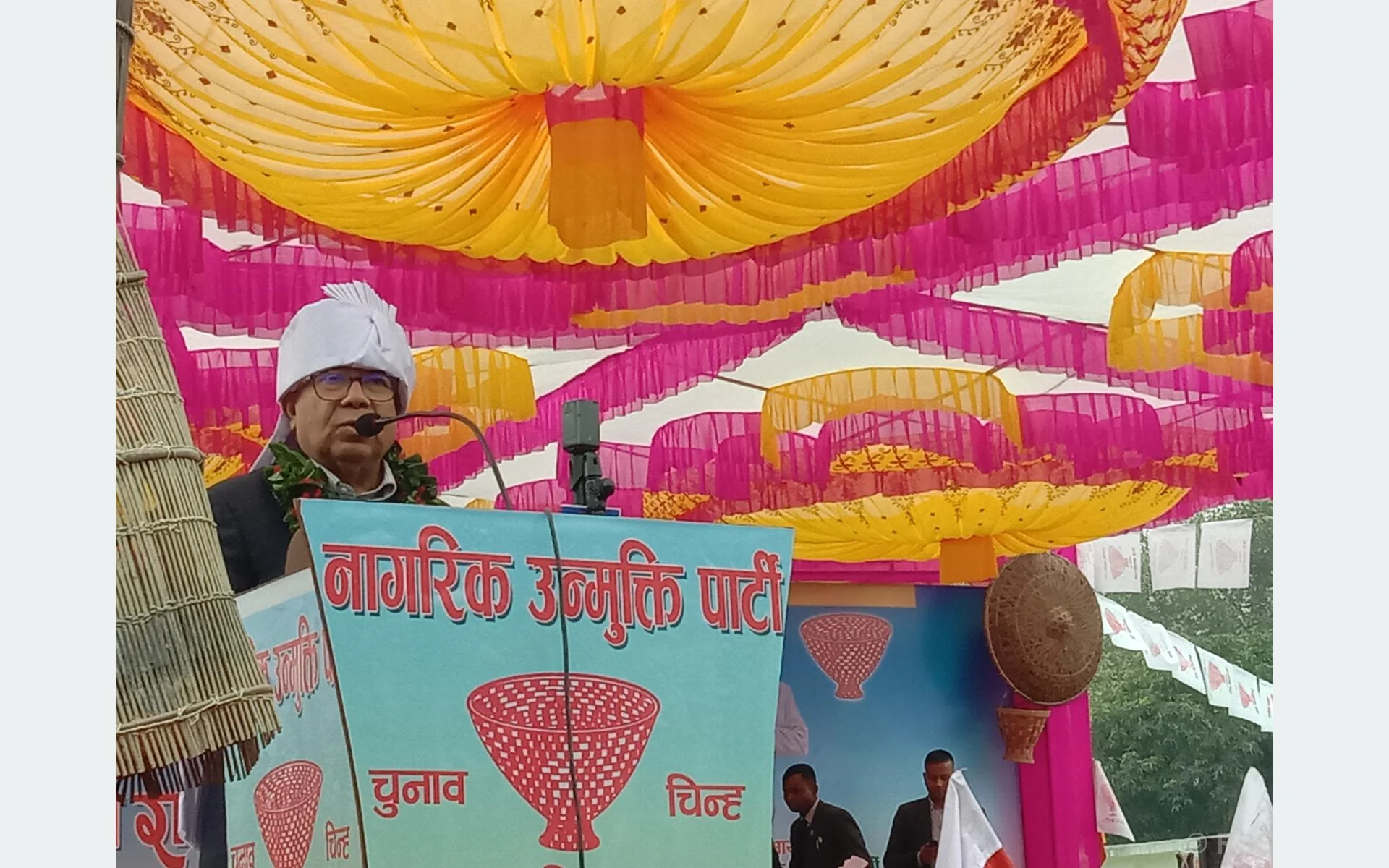 कैलाली । नेकपा (*एकीकृत समाजवादी) का अध्यक्ष तथा पूर्वप्रधानमन्त्री माधवकुमार नेपालले देशको पहिचानलाई जोगाउन समाजका सबै वर्ग लाग्नुपर्ने बताएका छन् । कैलालीको टीकापुरमा आज सुरु भएको नागरिक उन्मुक्ति पार्टीको प्रथम राष्ट्रिय महाधिवेशनमा उनले देशको पहिचान जोगाउन सबैले लाग्नुपर्ने बताएका हुन् ।