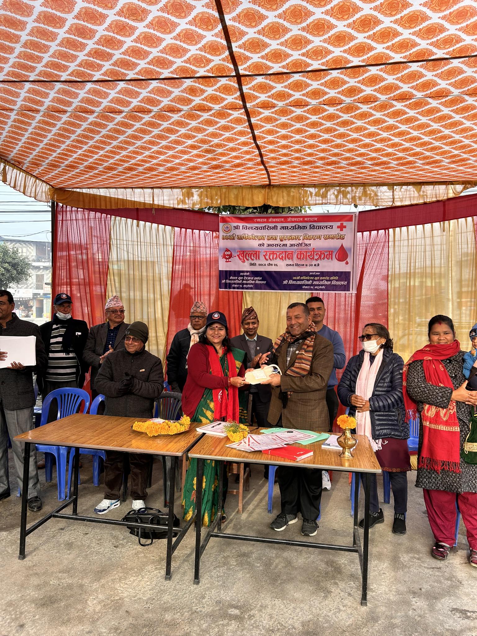 विद्यालयको ७७औं वार्षिक उत्सव तथा अभिभावक दिवसको पूर्वसन्ध्यामा बिहीबार आयोजित कार्यक्रममा अधिकांश नयाँ रक्तदाता सहभागी भए । नेपाल रेडक्रस सोसाइटी कास्कीका उपसभापति उर्मिला खड्काले विद्यालयका सहप्रधानाध्यापक रामबहादुर बानियाँलाई ब्लड ब्याग हस्तान्तरण गरी कार्यक्रम उद्घाटन गरिन् ।