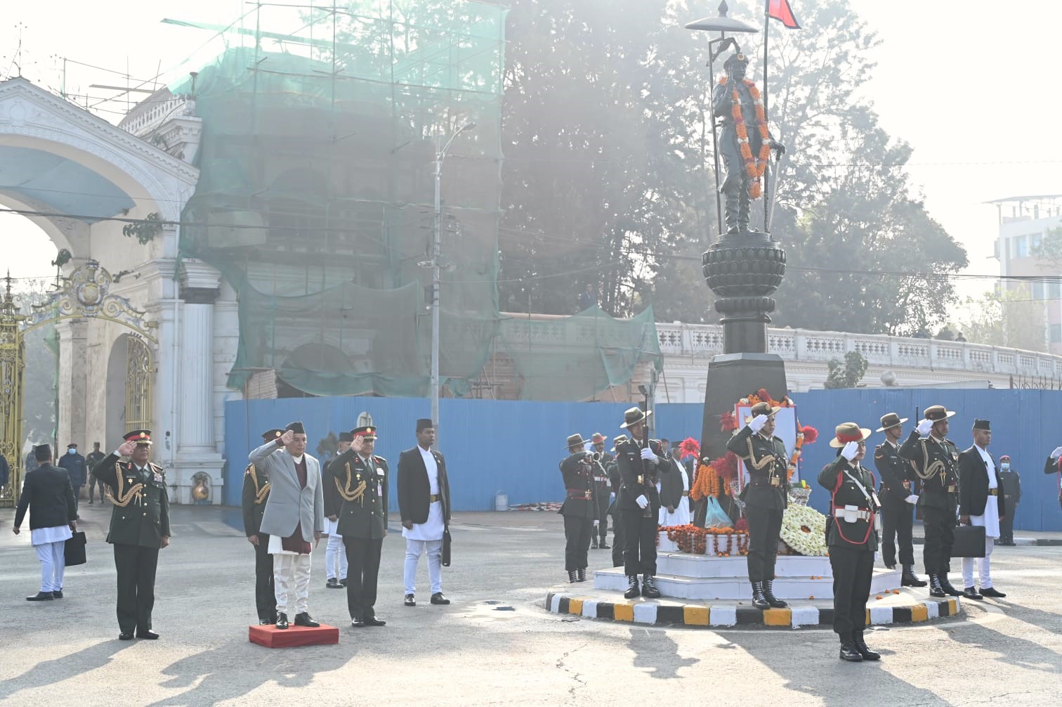 राष्ट्रपति पौडेलले शुक्रबार बिहान नेपाल एकीकरण अभियानका नेतृत्वकर्ता पृथ्वीनारायण शाहको ३०२औँ जन्मजयन्ती तथा राष्ट्रिय एकता दिवसको सन्दर्भमा सिंहदरबार पश्चिम गेट पुगेर पृथ्वीनारायण शाहको शालीकमा माल्र्यापर्ण गरेका हुन् ।