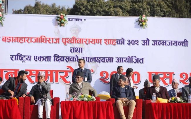 राप्रपाले काठमाडौंको भृकुटीमण्डपमा पृथ्वीजयन्तीका अवसरमा आयोजना गरेको चियापानमा प्रधानमन्त्री पुष्पकमल दाहाल प्रचण्ड, सभामुख देवराज घिमिरे, पूर्वप्रधानमन्त्रीहरु केपी शर्मा ओली, शेरबहादुर देउवा लगायत उपप्रधान एवं गृहमन्त्री नारायणकाजी श्रेष्ठ, पूर्व गृहमन्त्री समेत रहेका राष्ट्रिय स्वतन्त्र पार्टीका सभापति रवि लामिछाने लगायत पूर्व प्रशासकसमेत पुगेका छन् ।