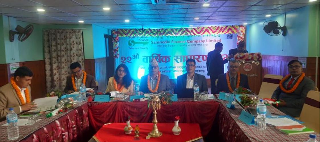 काठमाडौं । समृद्धि फाइनान्स कम्पनी लिमिटेडले शनिबार आफ्नो २२औं साधारणसभा सम्पन्न गरेको छ ।