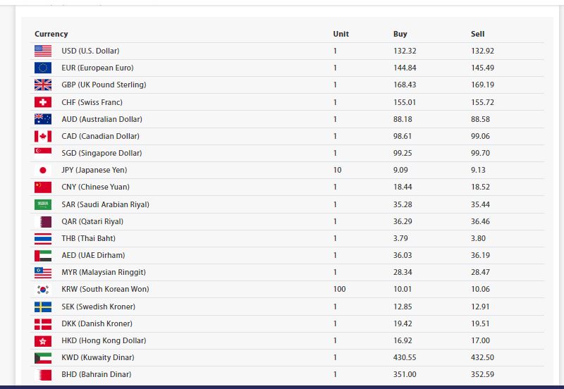 त्यस्तै, युरो एकको खरिद दर १४४ रुपैयाँ ८४ पैसा र बिक्री दर १४५ रुपैयाँ ४९ पैसा छ । त्यसैगरी, बेलायती पाउण्ड एकको खरिद दर १६८ रुपैयाँ ४३ पैसा र बिक्री दर १६८ रुपैयाँ १९ पैसा रहेको छ । कतारी रियालको मूल्य एकको खरिद दर ३६ रुपैयाँ २९ पैसा र बिक्री दर ३६ रुपैयाँ ४६ पैसा रहेको राष्ट्र बैंकले जनाएको छ ।
