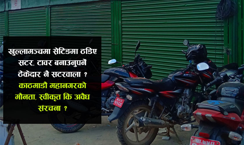 खुल्लामञ्चमा सेटिङमा ठडिए सटर, टावर बनाउनुपर्ने ठेकेदार नै सटरवाला !