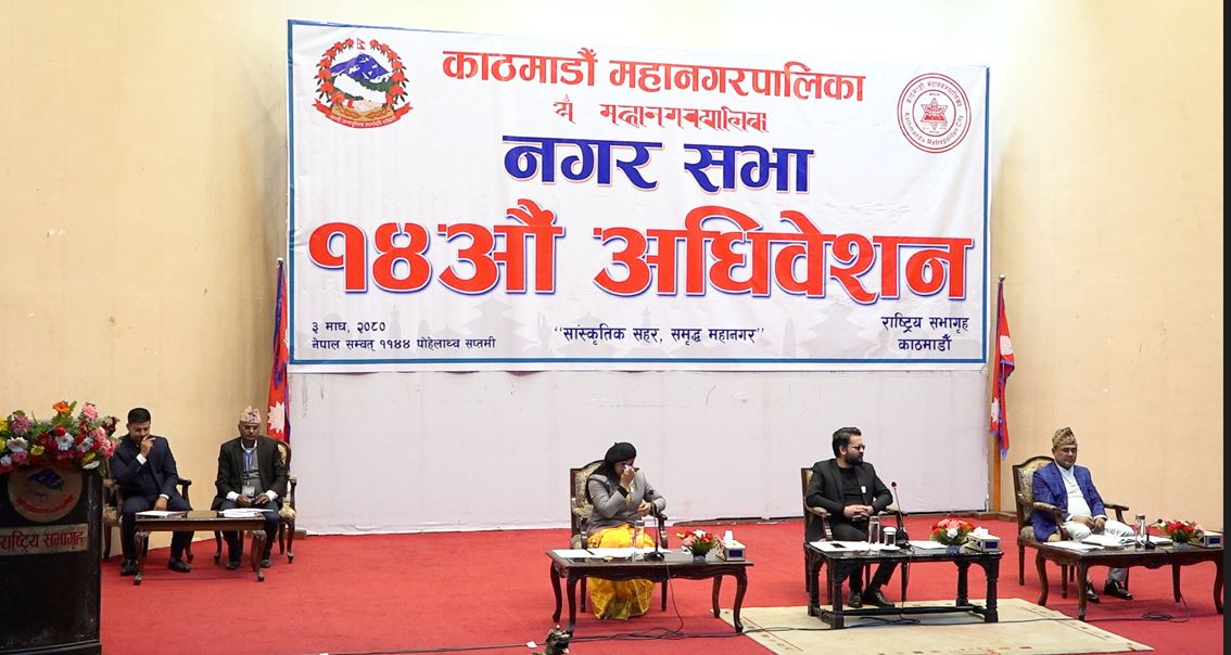 उनले भने, ‘सभामा प्रस्तुत भएका प्रस्तावहरु सभाबाट पारित भइसकेको हुँदा नगरसभा कार्यविधि ऐन २०७५ को दफा ३ बमोजिम काठमाडौं महानगरपालिकाको १४ औं अधिवेशन अन्त्य भएको जानकारी गराउँदछु ।’