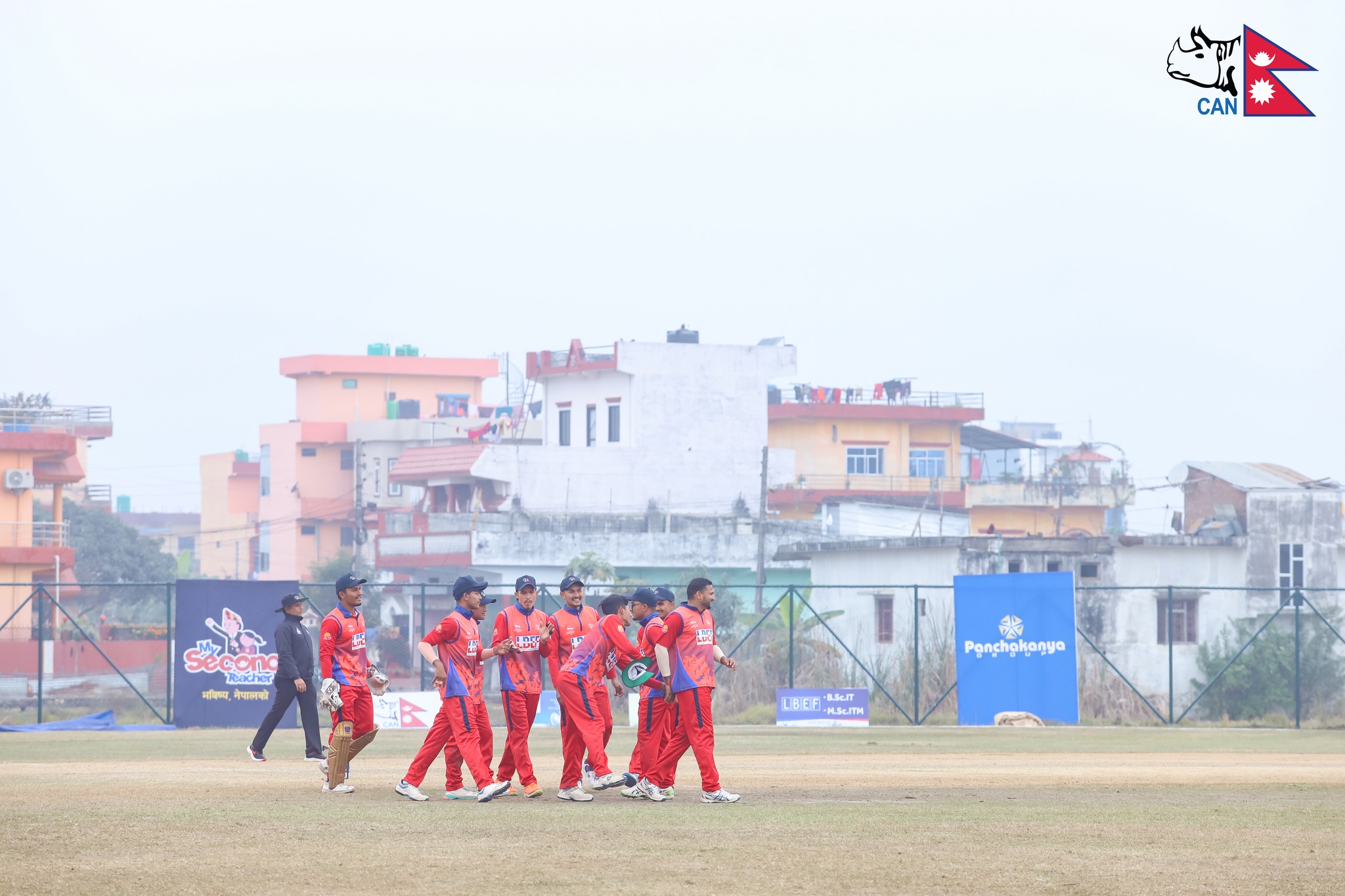 यस्तै, हिमांशु शाहीले २५ रन बनाउँदा कप्तान रविन्द्र शाहीले ११ रुन बनाए । चार खेलाडीले खाता खोल्न समेत सकेनन् ।