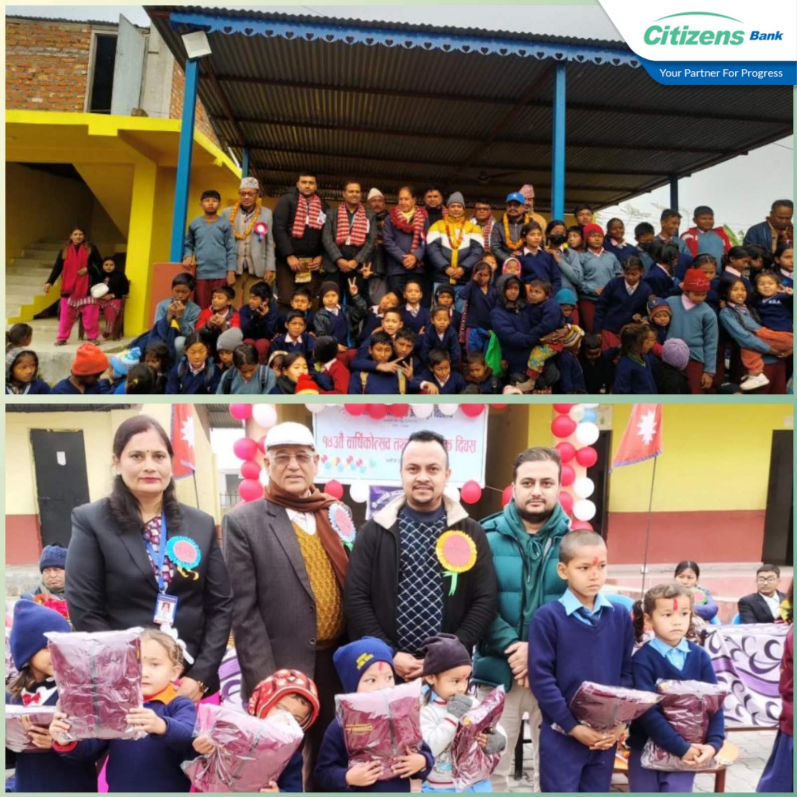 यसका साथै सिटिजन्स बैंक कालिकानगर शाखा , बुटवलले पनि स्थानीय श्री मायादेवी जनजागृति आधारभूत विद्यालयका ९० जना विद्यार्थीहरुलाई न्यानो कपडा वितरण गरेको छ । चिसो मौसमका कारण न्यानो कपडाको अभावमा विद्यार्थीहरुको पठनपाठनमा समेत असर परेको हुँदा संस्थागत सामाजिक उत्तरदायित्व अन्तर्गत विद्यार्थीहरुलाई न्यानो कपडा वितरण गरिएको हो ।